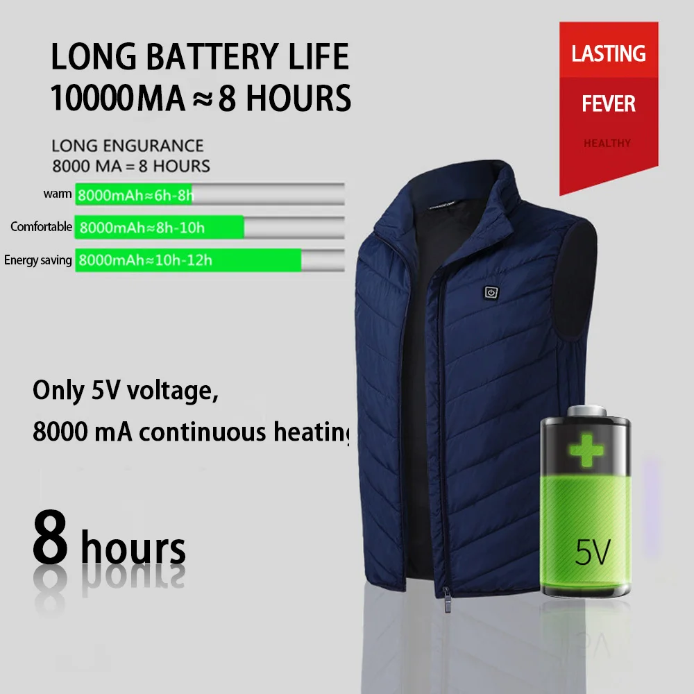5. Широкое применение: Этот жилет с подогревом идеально подходит для катания на лыжах, зимней рыбалки, катания на горных велосипедах, велоспорта, кемпинга, снежного треккинга, охоты, активного отдыха на открытом воздухе, зимних улиц, повседневного офиса и многого другого.