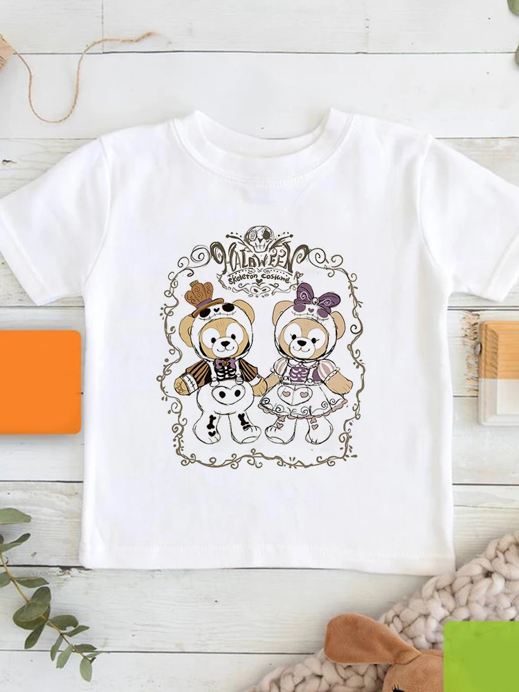 Duffy ShellieMay одежда с принтом Kawaii Harajuku винтажная Детская Футболка повседневный Хэллоуин скелет костюм дети мультфильм Топы Футболки