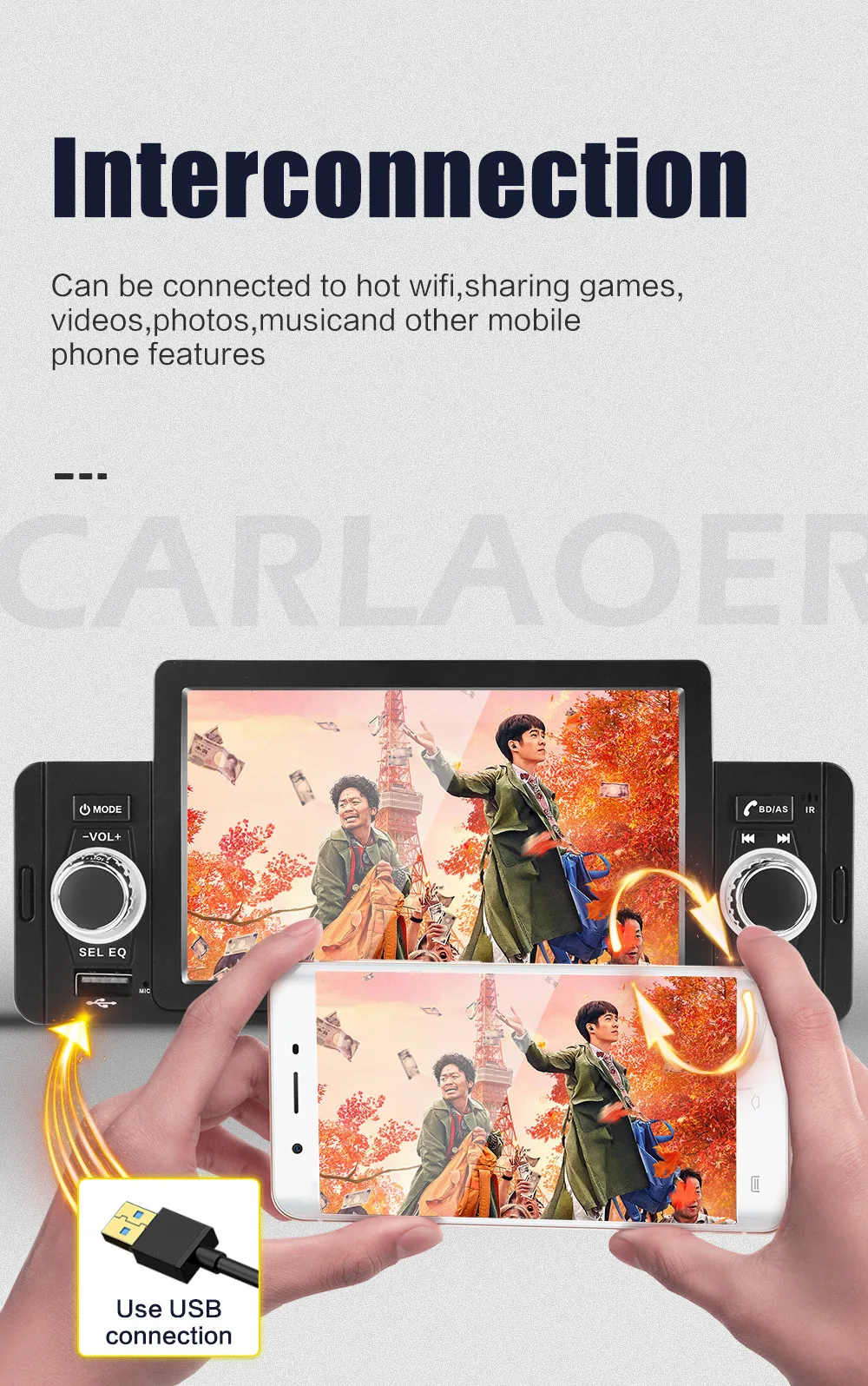 Поддержка подключения на мобильный телефон: зеркальная связь позволяет синхронизировать мобильный телефон с экраном в автомобиле через подключение их к usb-кабелю (только поддержка s для телефона Android). Поскольку он очень строгий с кабелем передачи данных. Используйте оригинальный usb-кабель для телефона. Медиа U диск автоматически и может быть воспроизведен на этом устройстве напрямую.