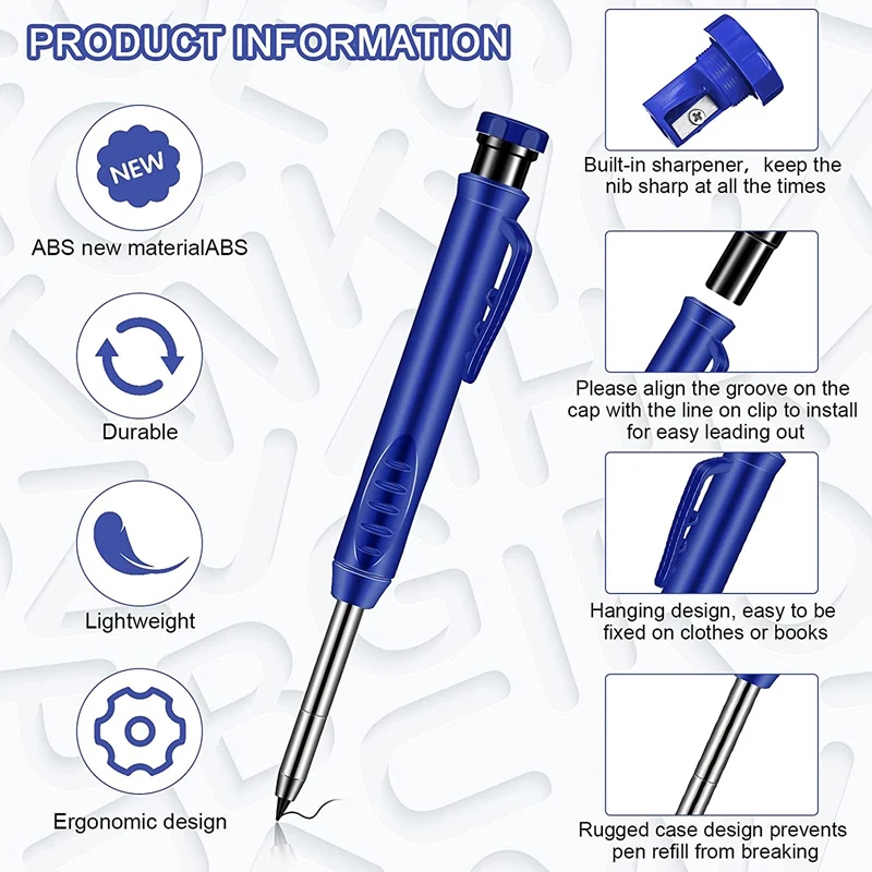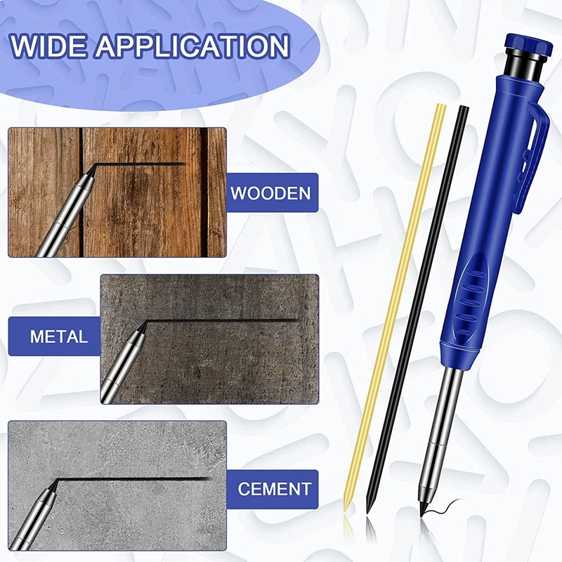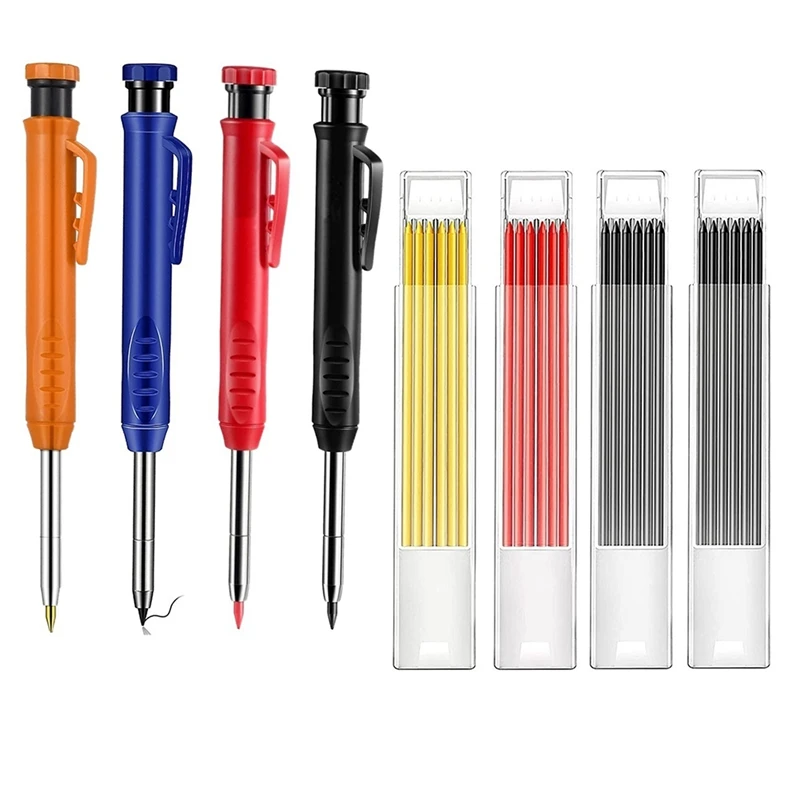Достаточно, чтобы удовлетворить ваши ежедневные потребности, вы также можете поделиться с друзьямиИзысканный дизайн: Эти прочные деревообрабатывающие карандаши разработаны из высококачественных материалов, которые могут предоставить вам удобный и нескользящий опыт письма. Высококачественный чехол для ручки защитит ваш стержень ручки от поломкиРазумный Дизайн: наш механический карандаш удобен в использовании. Его конструкция подходит для формы руки, благодаря большему диаметру, чтобы улучшить сцепление. Таким образом, деревообрабатывающий карандаш не выскальзывает из пальцев, а повторяющиеся отметины уменьшат больПодходит для: Эта ручка-карандаш для деревообработки является прочной, точной и практичной. Из-за его цвета, его можно найти в любом месте. Даже в середине строительной площадки. Кроме того, его тонкие точки длиной 6 мм и 43 мм позволяют ему рисовать в местах, где другие масляные ручки не могут идти.Используется для любых вещей, где угодно: Поместите этот промышленный карандаш в ваш набор измерительных инструментов, Повесьте его в ремень инструмента для быстрого и легкого доступа или храните его в ручном ящике для деревообработки. Удобный карандаш универсален и прост в использованииТип заправки: A:(12 черный/6 Желтый/6 красный) / B:(24 черный)Цвет: оранжевый + синий + красный + черныйМатериал: АБС + металлПосылка:4 x деревообрабатывающие карандаши (1 orange/1 синий/1 красный/1 черный)4 коробки x заправки