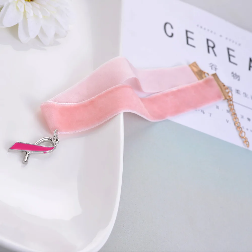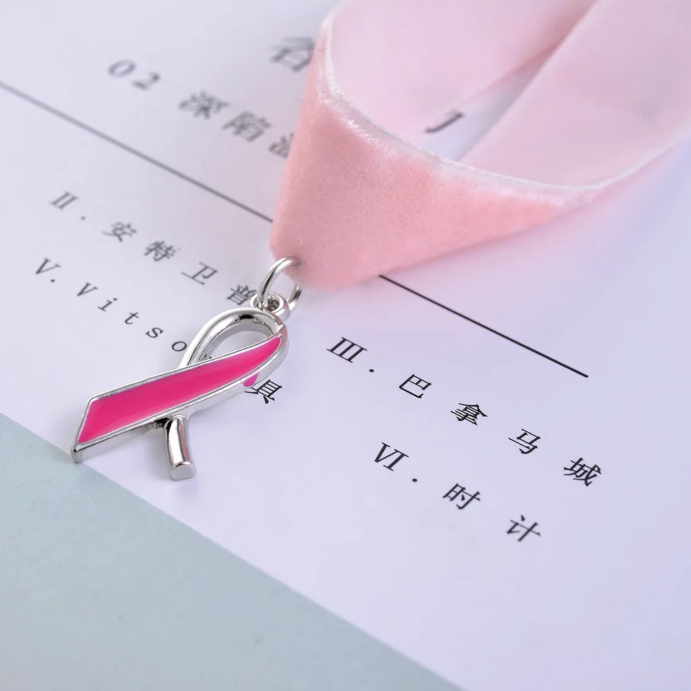 Item name:BREAST CANCER AWARENESS Pink Ribbon Crystal Charm Necklace
