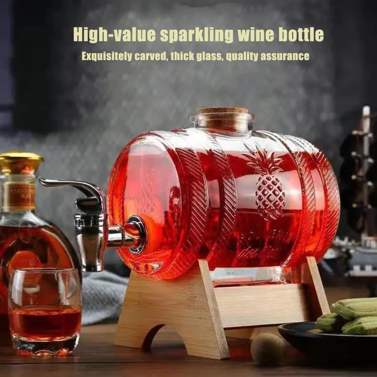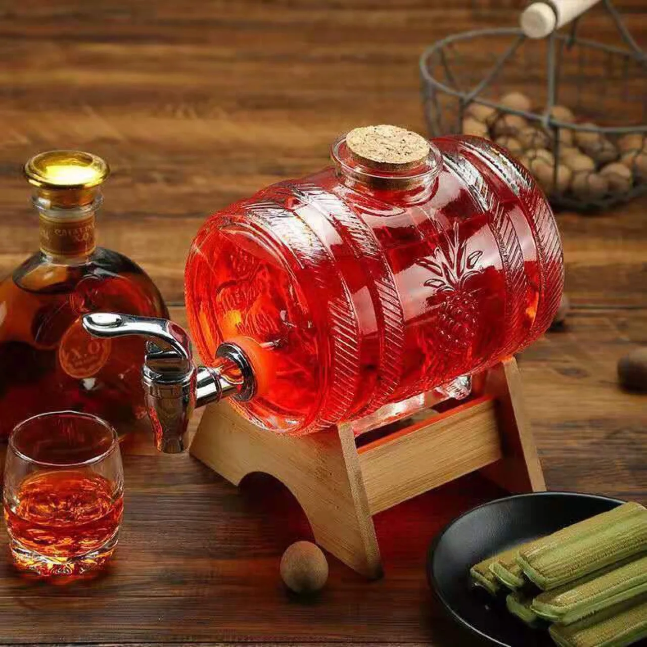 1 л бочка для виски, бочка из плотного стекла для виски, бочка из плотного стекла, бочка для вина, герметичная бочка для фруктов, вина, меда, сока, бочка из стекла