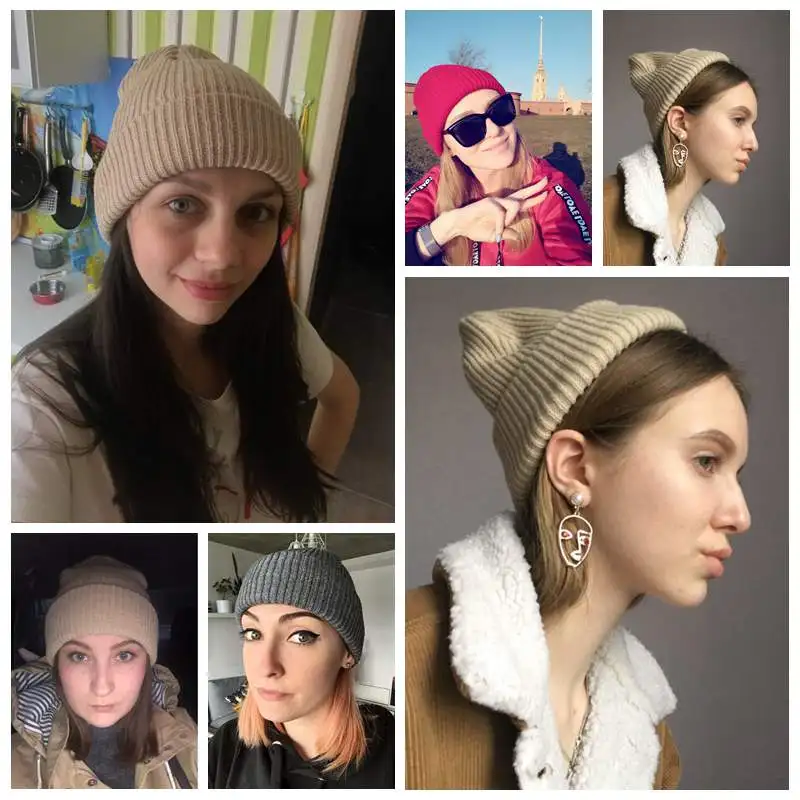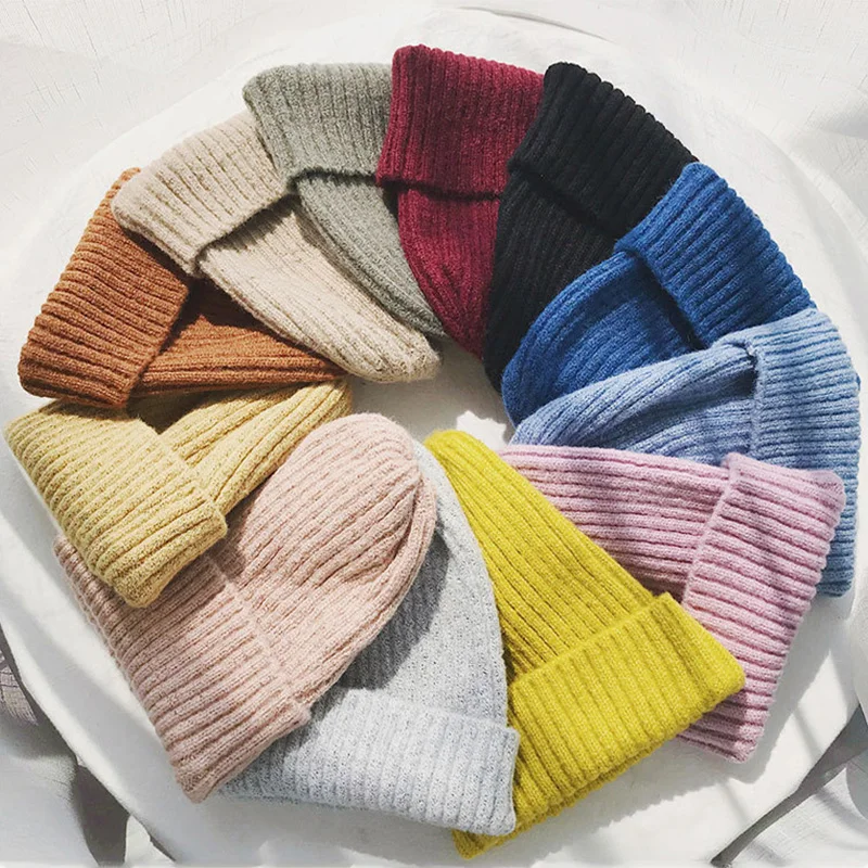 Однотонные вязаные шапки в полоску, зимние женские и мужские повседневные Шапки, Хлопковые женские зимние шапки, теплая шапочка