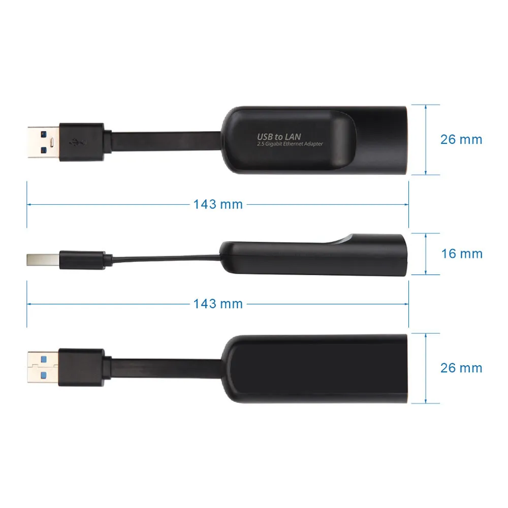 1. Адаптер USB для Gigabit Ethernet поддерживает высокоскоростную широкополосную связь до 2,5 Гбит/с (2500 Мбит/с), 100 Мбит/с быстрее, чем 1 Гбит/с Gigabit Ethernet и обратная совместимость с 10/1000 Мбит/с.