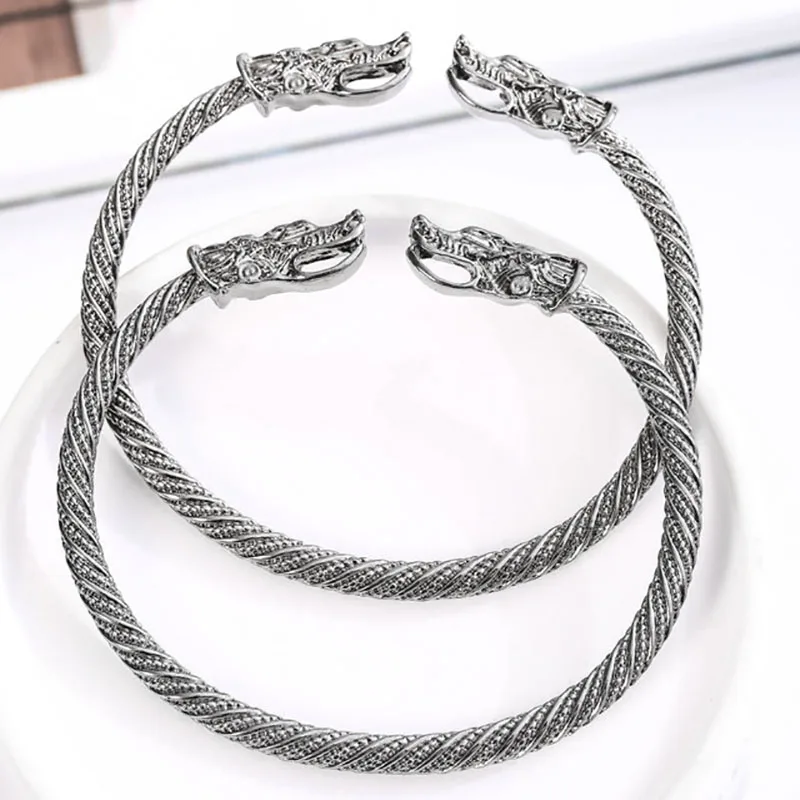 Горячая Распродажа, оригинальный браслет, Подростковый двойной браслет с головой дракона волка, индийские ювелирные изделия, мужской браслет, браслеты-манжеты для женщин