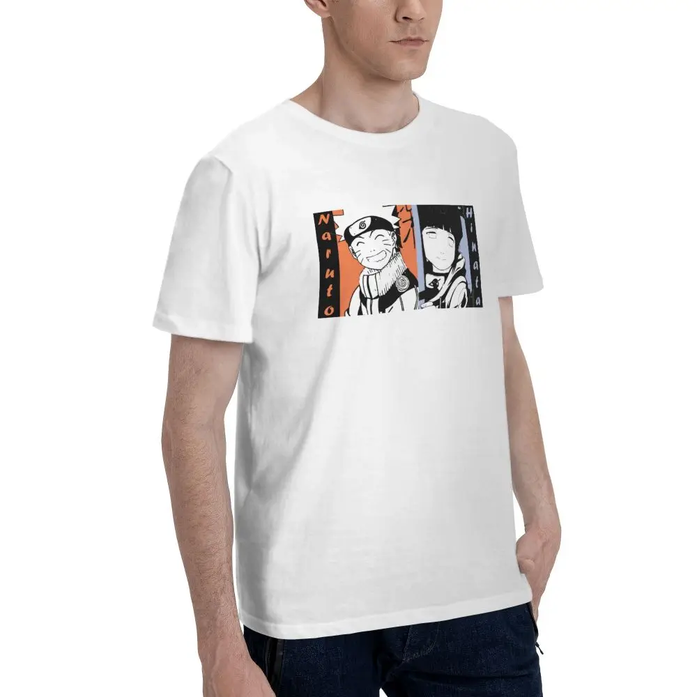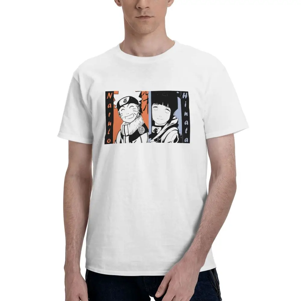 Мужские футболки Bandai Naruto And Hinata, крутая футболка из 100% хлопка с коротким рукавом, Аниме Манга, футболка с круглым вырезом, топы с принтом