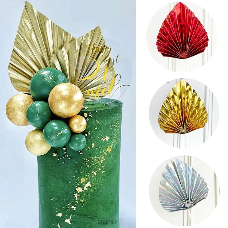 Блестящая бумага вентилятор торт Топпер Золотой пальмовый лист день рождения свадьбы украшение вставка для торта День рождения Топпер Декор для выпечки торта инструменты