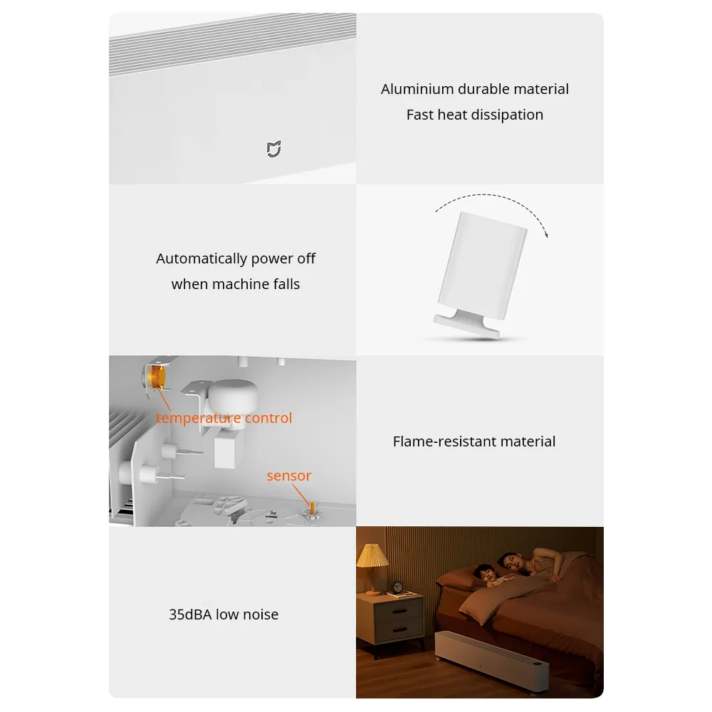 1. Описание:Xiaomi Mijia Graphene Электрический подогреватель плинтуса 2200 Вт быстрый нагрев/IPX4 водонепроницаемый/умный ГРМ/низкий уровень шума домашний электрический нагреватель TJXDNQ04LX2. Особенности:-Графеновая технология быстрого нагрева, быстро нагревается и ускоряется.-2200 Вт высокой мощности, что может увеличить температуру в спальне в течение получаса.-Интеллектуальная постоянная температура, встроенная система контроля температуры, которая меньше и более энергосберегающая.-Поддержка дистанционного управления приложением Mijia, температура и время могут быть установлены в соответствии с приложением.-Хороший помощник для IPX4 влагозащищенной сушилки для одежды.-Умное сенсорное управление, с защитой от блокировки ребенка и автоматической защитой от отключения питания.3. Параметры:Наименование товара:Обогреватель для плинтуса Xiaomi GrapheneМодель:TJXDNQ04LXНоминальное напряжение: 220 В (вилка CN с 3 контактами)Номинальная мощность: 2200 ВтНоминальная частота: 50 ГцУровень водонепроницаемости: IPX4Контроль температуры: 18-28 ℃Функция синхронизации: 0-12HПриложение: Mi HomeРазмер: 1200*126,4*209 мм4. Примечание:* Возможны незначительные различия в измерениях вручную.*Гарантия на продукт только для клиентов в Китае, Иностранные клиенты не могут быть гарантированы, пожалуйста, поймите.5. Посылка:1 * Электрический нагреватель1 * Руководство пользователя