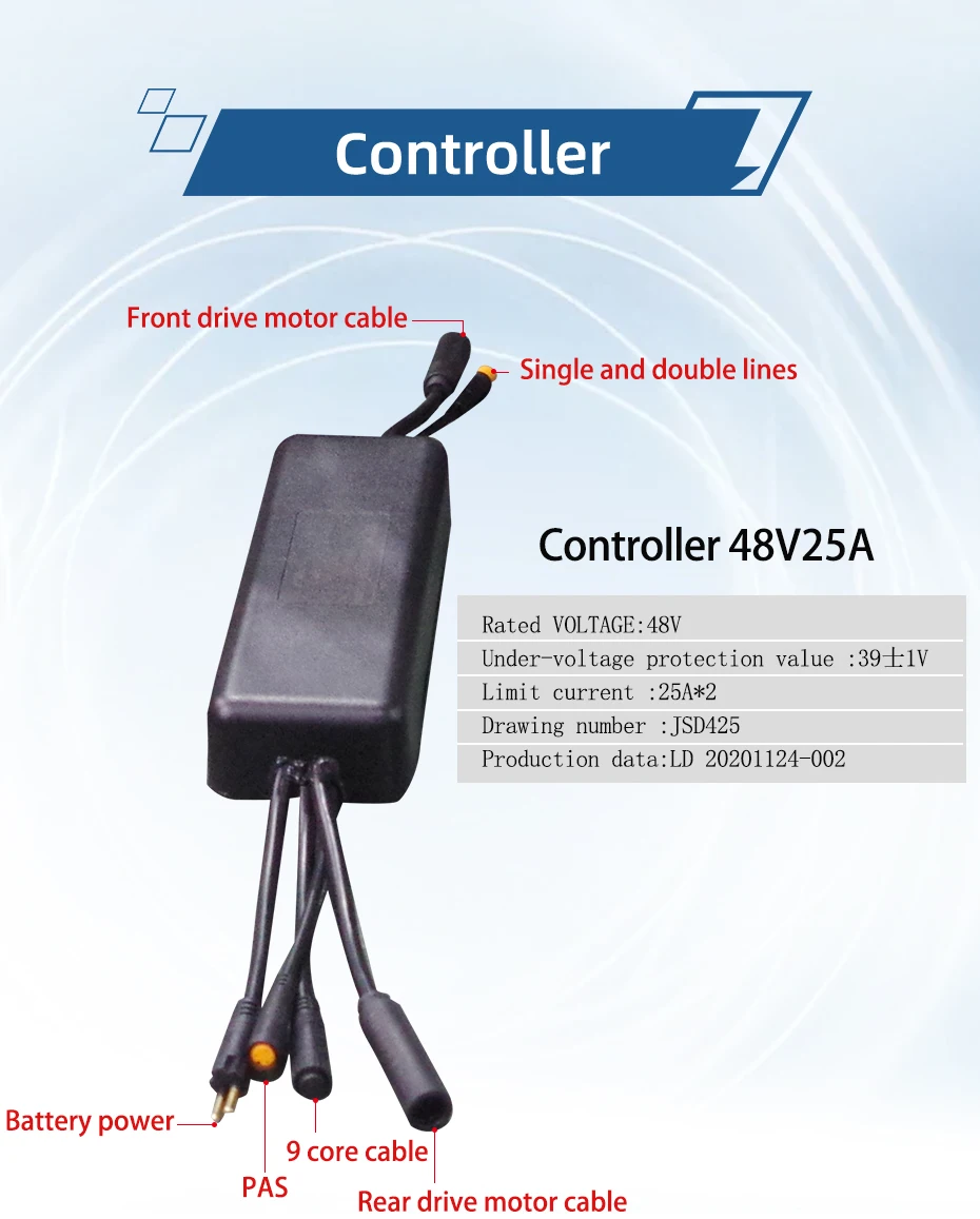 Модель: JUESHUAI 1000W передний/задний моторКолесо Диаметр (дюймы): 20/26 дюймов x 4,0Конструкция: привод передачНоминальное напряжение (DCV): 48Номинальная мощность (W): передняя 1000 Вт, Rer 1000 ВтЭффективность (%)≥ 80Цвет: черныйУровень шума (дБ)< 55Рабочая температура: -20-45 ℃