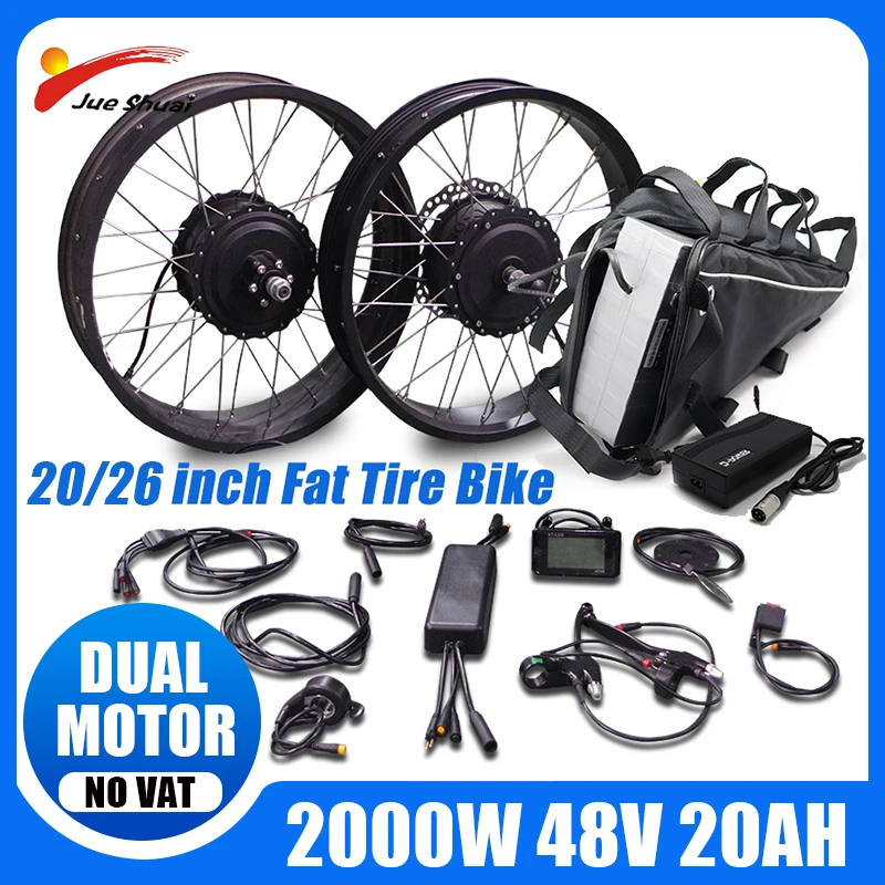 48 В, 2000 Вт, двойной двигатель, внешний аккумулятор 20, 26 дюймов, передний и задний бесщеточный двигатель, комплект для электрического велосипеда