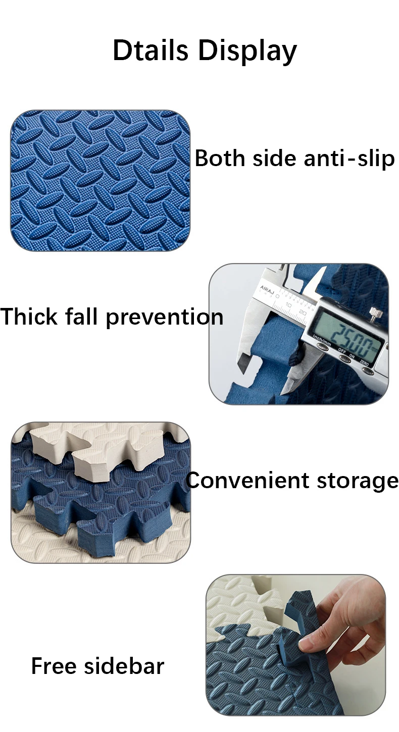 Модный дизайн, 100% новый бренд, высокое качество! 1. Материал: ЭВА 2. Количество: 4 шт./компл. 3. Один кусок размер: 30*30*1 см/1,2 см/2,5 см 4. Посылка включает в себя: 4 шт. игровой коврик Примечание: Мы являемся массовым производством и отправим вам товар сразу же после производства. Так как новый продукт может иметь специфический запах, запах исчезнет после мытья водой и сушки на воздухе. Сам продукт безвкусный, нетоксичный и безвредный. Вы можете быть уверены. Особенности: Производство новых материалов, защита окружающей среды, нетоксичный Супер гибкий, не боится удариться при использовании Только пятна можно очистить или протереть Легко собирается, может быть собран вместе с взаимодействием родителей и детей