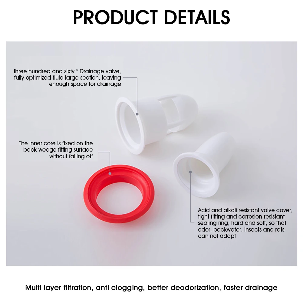 Силиконовый дренажный клапан для ванной и кухни с сердечником для душа, дренажный клапан с защитой от запаха для отверстия 3,7-5,2 см
