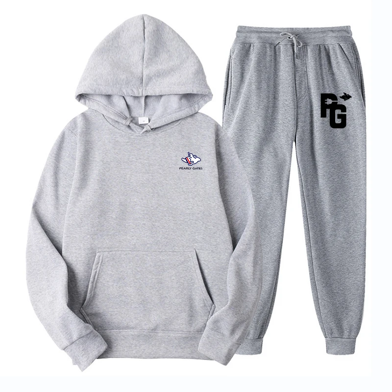 Новинка 2022, мужской зимний Однотонный свитер, спортивный костюм, 2 предмета, свитер + брюки, PG логотип, ветрозащитный, большой размер, повседневный костюм