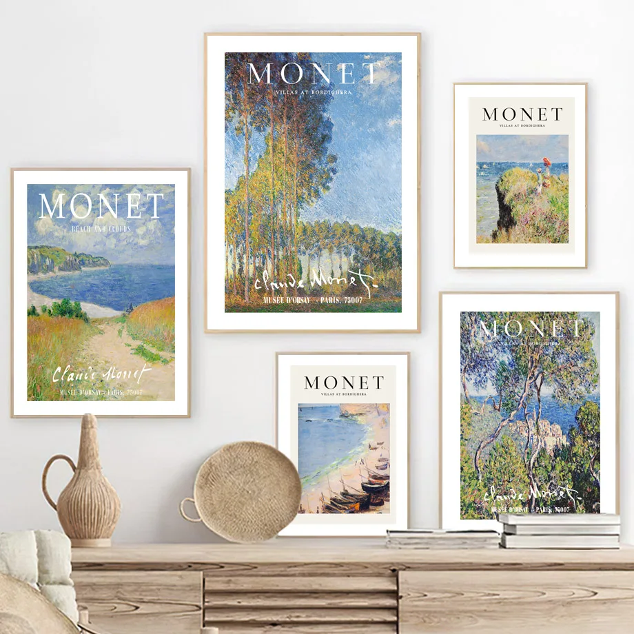 Картина на холсте в скандинавском стиле с изображением Клода Моне импрессионизма и нимфы для декора гостиной