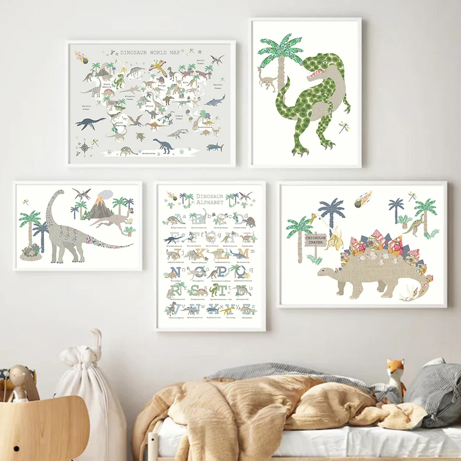 Настенная живопись с цифрами алфавита, динозавр, Обучающие картины ...