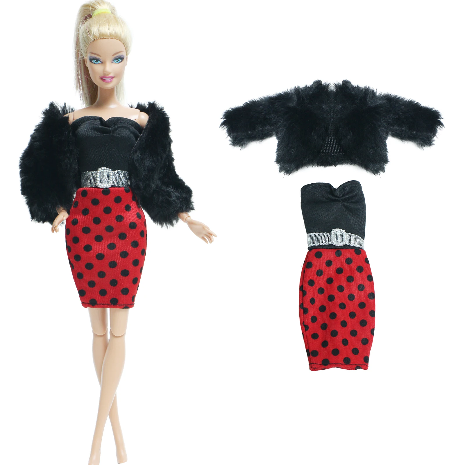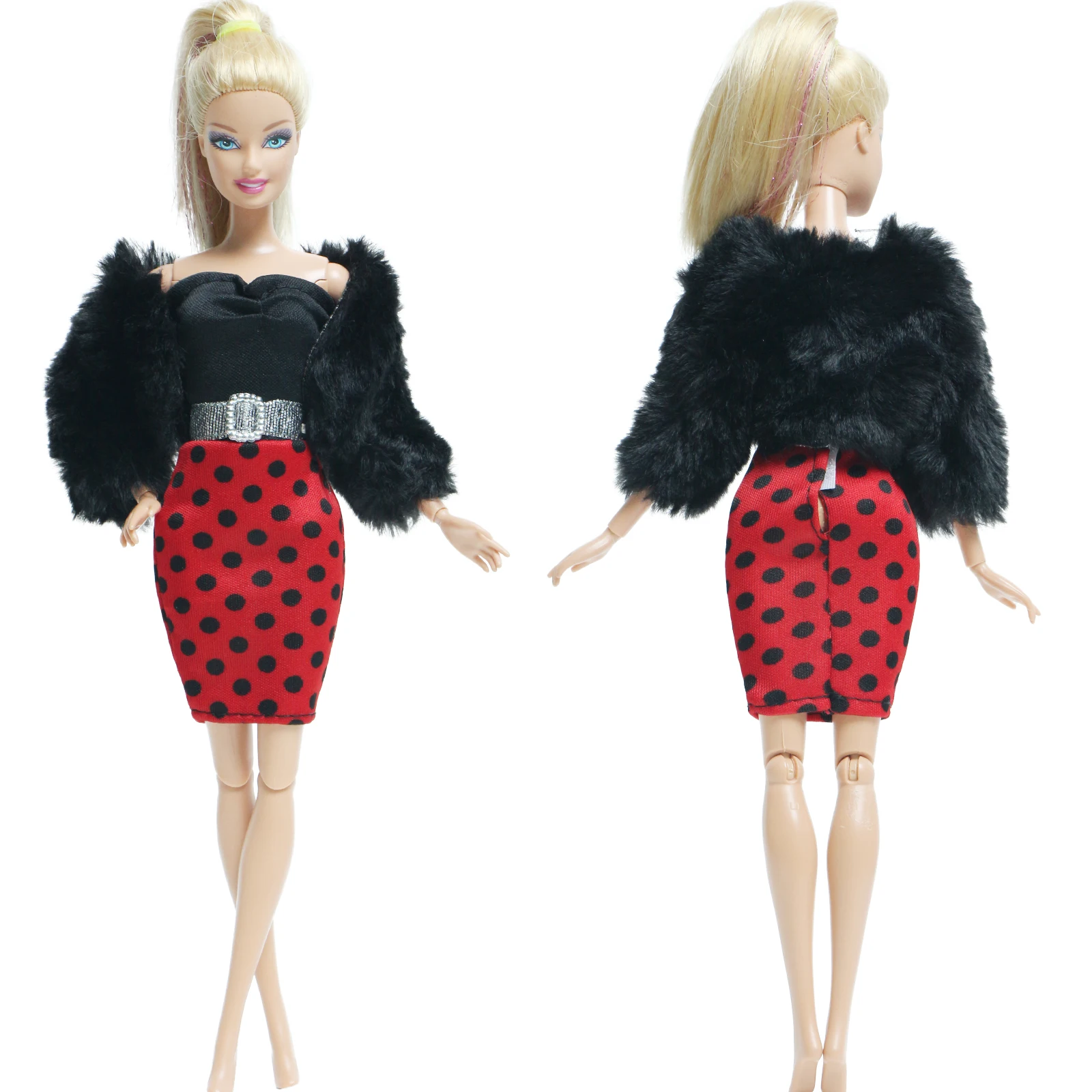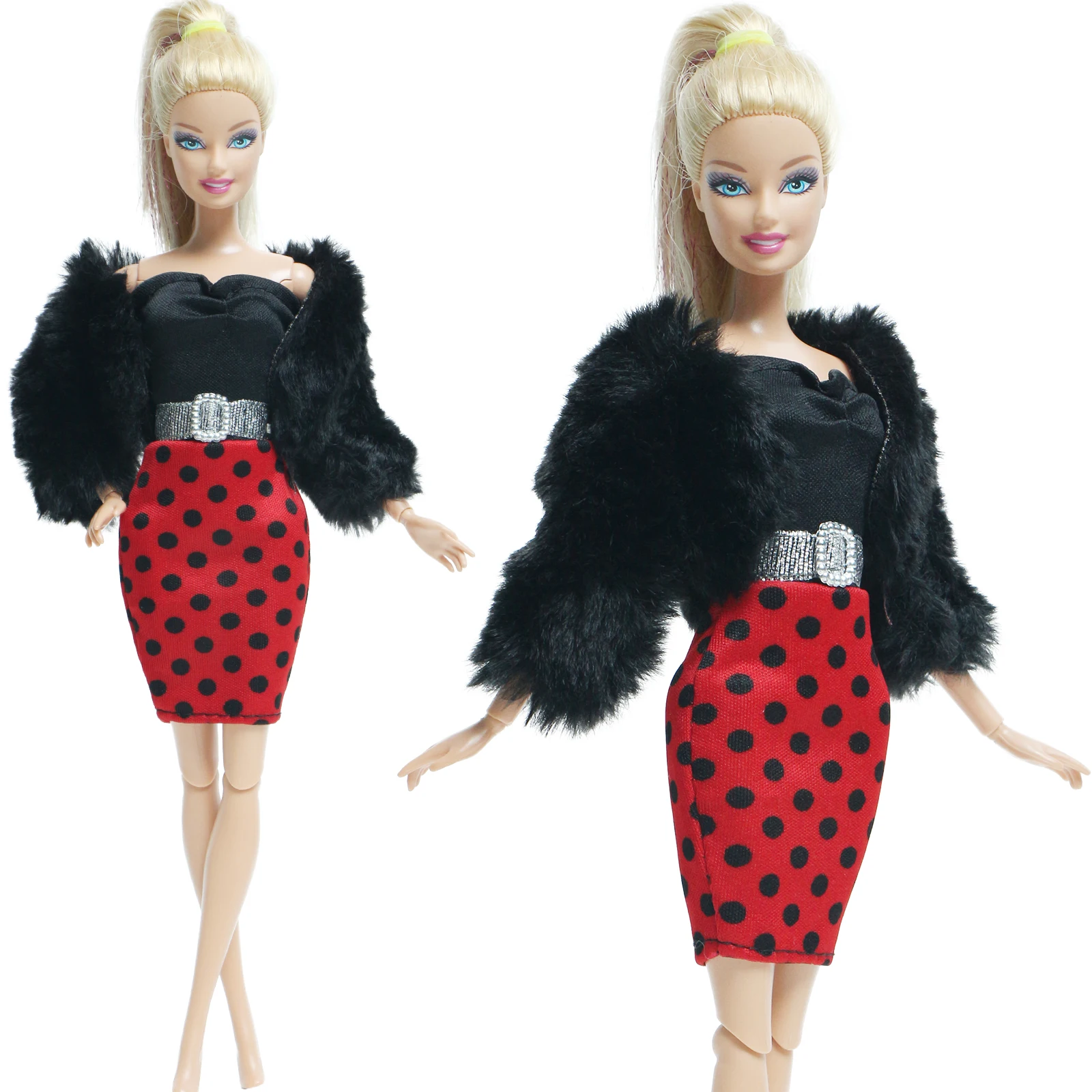 Новинка, модный наряд для куклы BJDBUS, меховое пальто, зимняя одежда для вечеринки, мини-платье-туба, Одежда для куклы Барби, аксессуары, детская игрушка в подарок