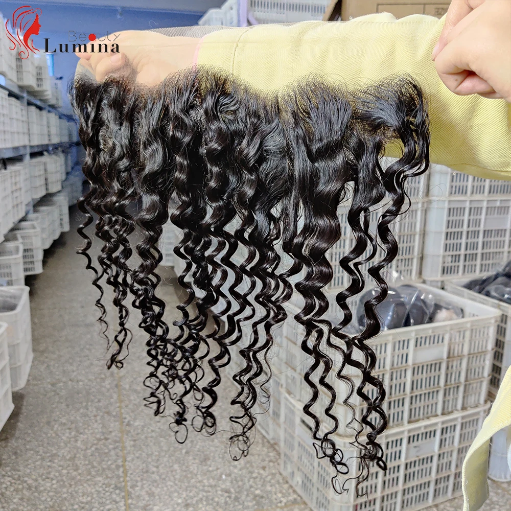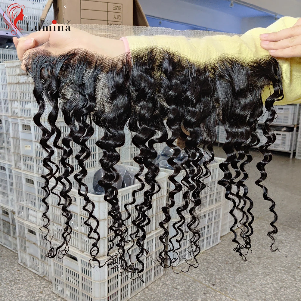 Фронтальная застежка на сетке с глубокой волной 13*4, фронтальные перуанские человеческие волосы на сетке с естественной линией волос для детей