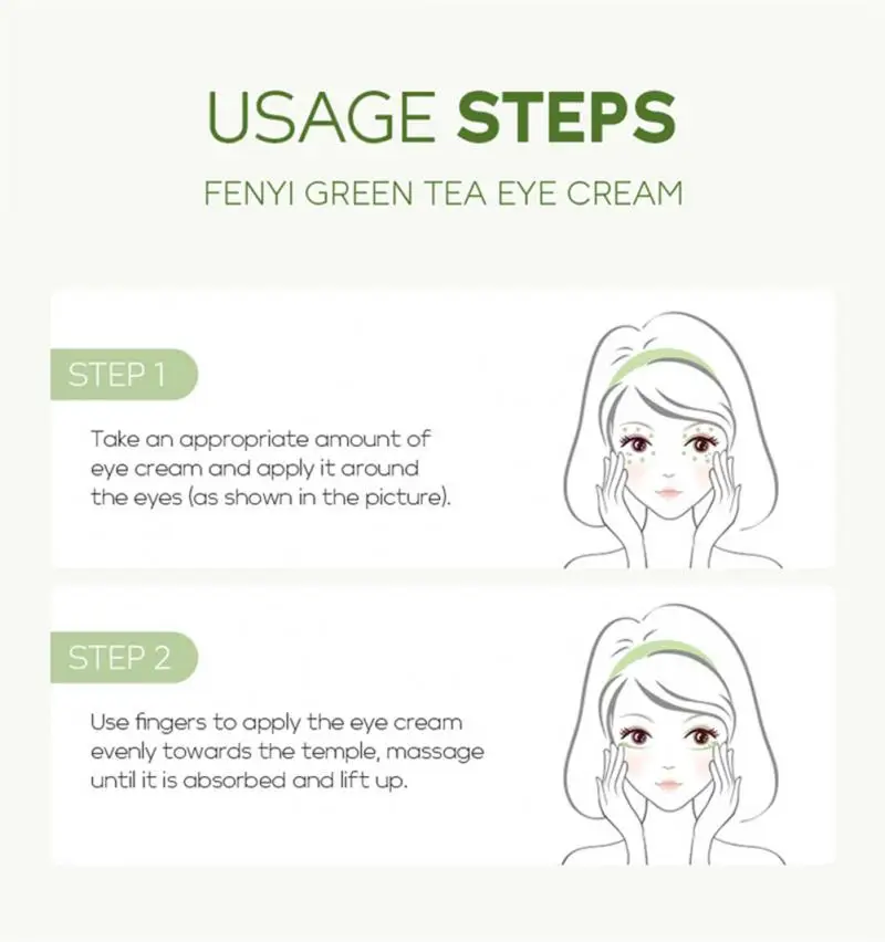 Шаг 2: Используйте пальцы, чтобы равномерно нанести крем для глаз к виску, массируйте до тех пор, пока он не впитывается и не поднимется.