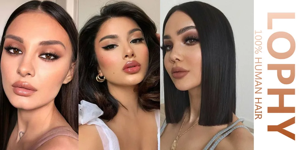 100% парик из человеческих волос с челкой короткие парики из челове...