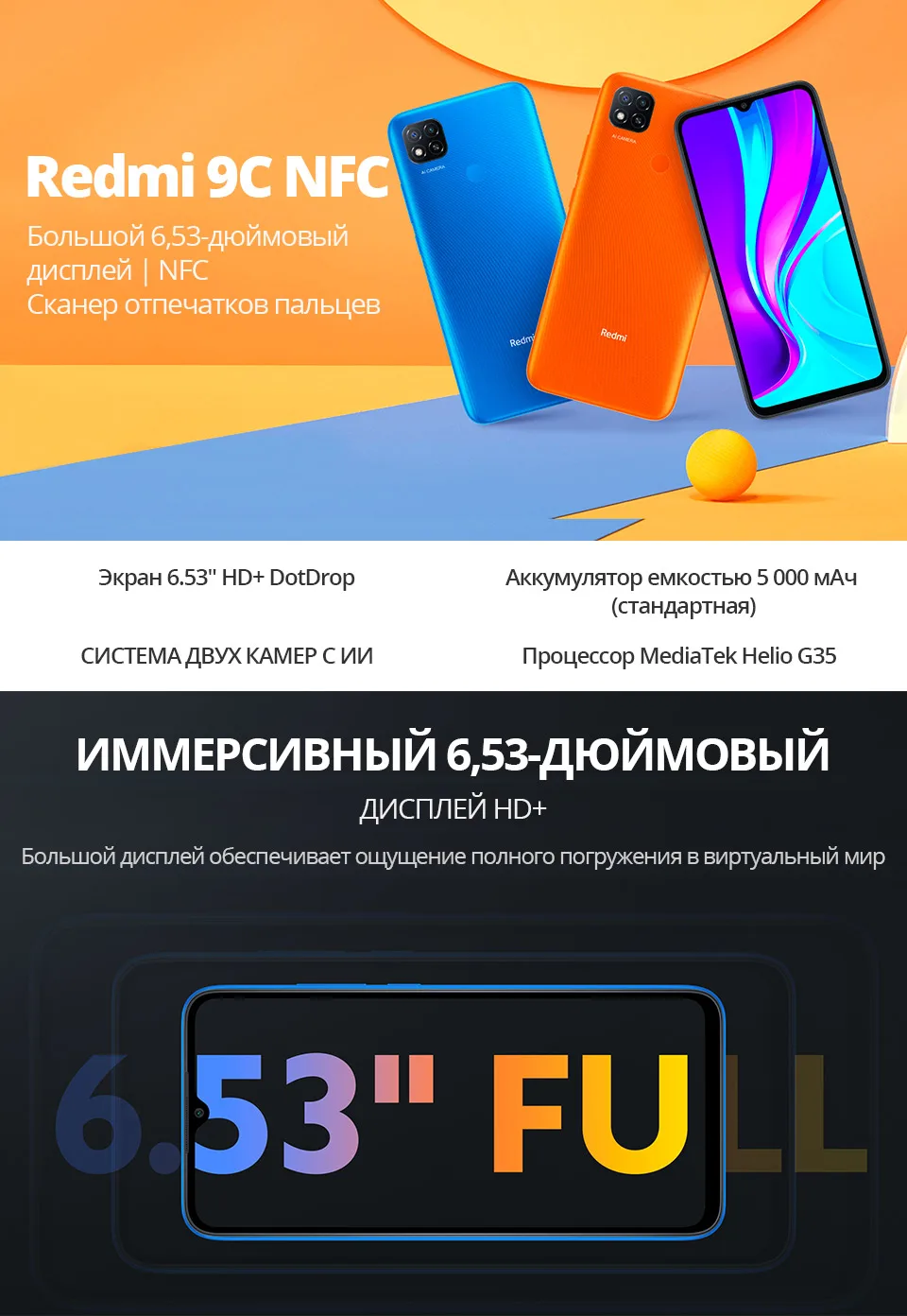 Смартфон Xiaomi Redmi 9C 128ГБ Ростест (ЕАС) доставка от 2 дней официальная гарантия