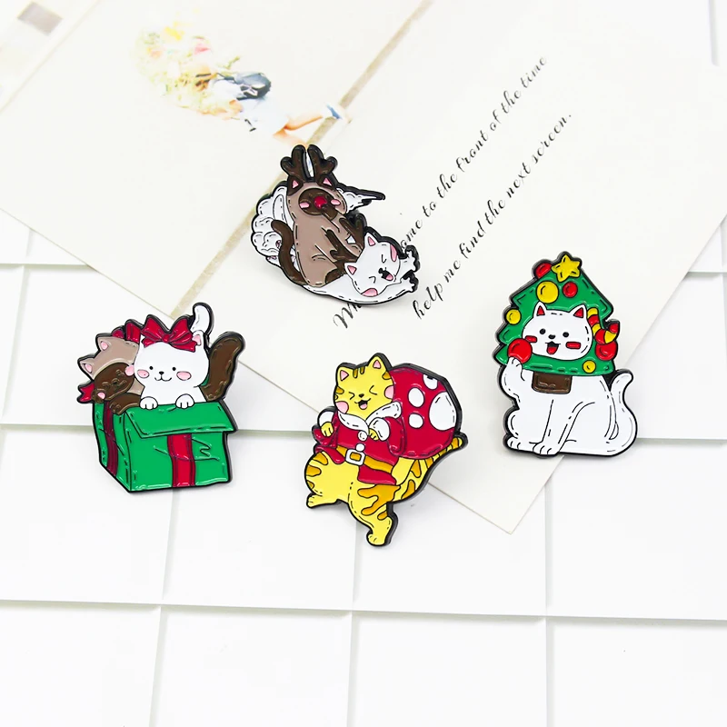 Модные рождественские броши, белая, желтая, кошка, лось, рождественская елка, Санта-Клаус, Подарочная коробка, кошка, эмалированные значки, брошь, новогодние подарки