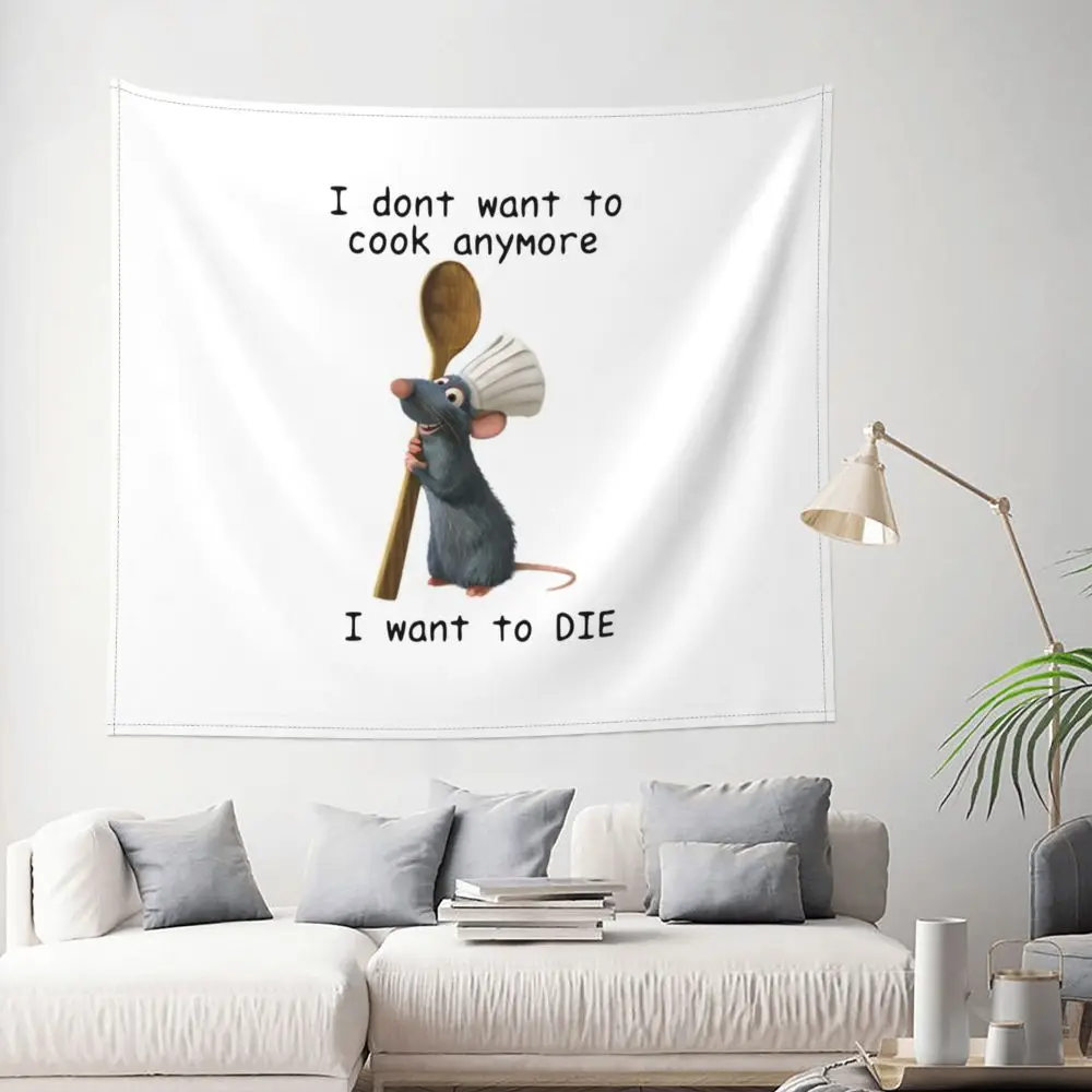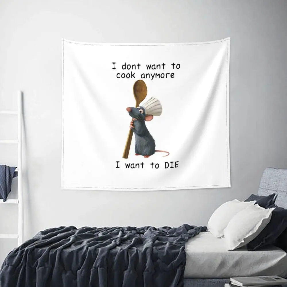 Я больше не хочу готовить, я хочу умирать, гобелен в стиле хиппи, настенное украшение на Хэллоуин, крыса, комнатное украшение, Настольная Обложка