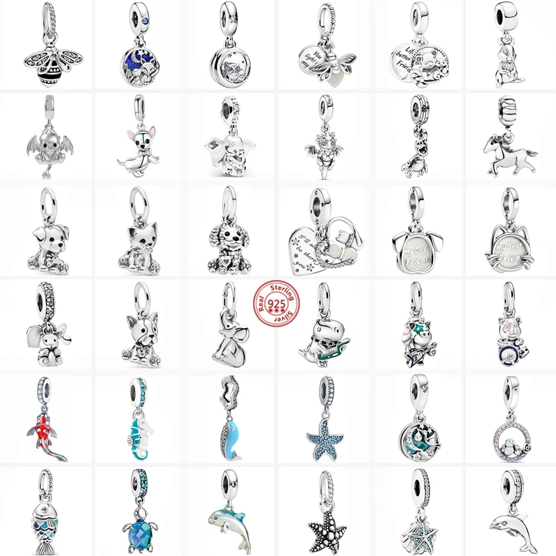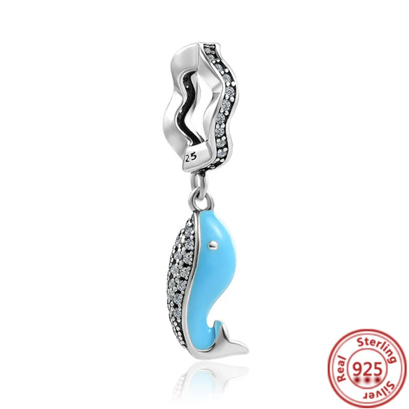 Лидер продаж, бусины-подвески из стерлингового серебра 925 пробы в виде Кита, дельфина, кошки, собаки, совы, лисы, пчелы, подходят для оригинальных браслетов Pandora, Женские Ювелирные изделия