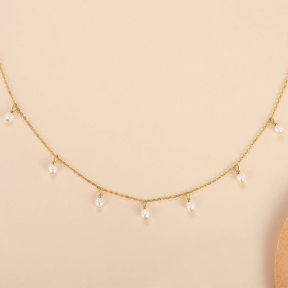 Ожерелье женское из серебра 925 пробы с жемчугом и покрытием из 18-...