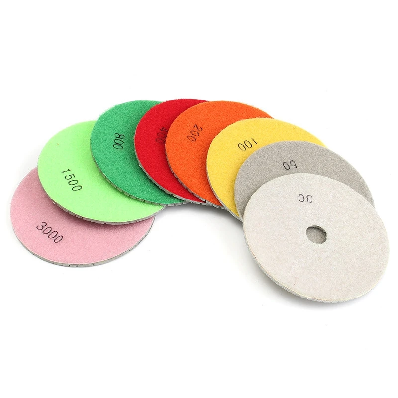 Набор алмазных полировальных насадок 9 шт.компл., 5 дюймов, гранит, мрамор, бетон, плитка, влажная сушка, для гранита, бетона, мрамора, каменной плитки