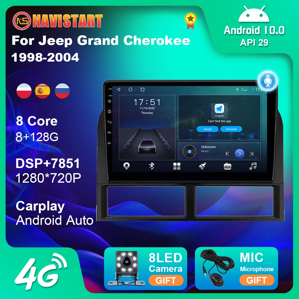 Автомагнитола для Jeep Grand Cherokee II WJ 1998-2004, автомагнитола на ANDROID, Авторадио, мультимедийный плеер для Carplay No 1 din, 2din, DVD