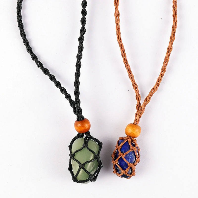 Тканая Сетчатая Сумка в этническом стиле, ожерелье в сеточку, ювелирное ожерелье из восковой веревки