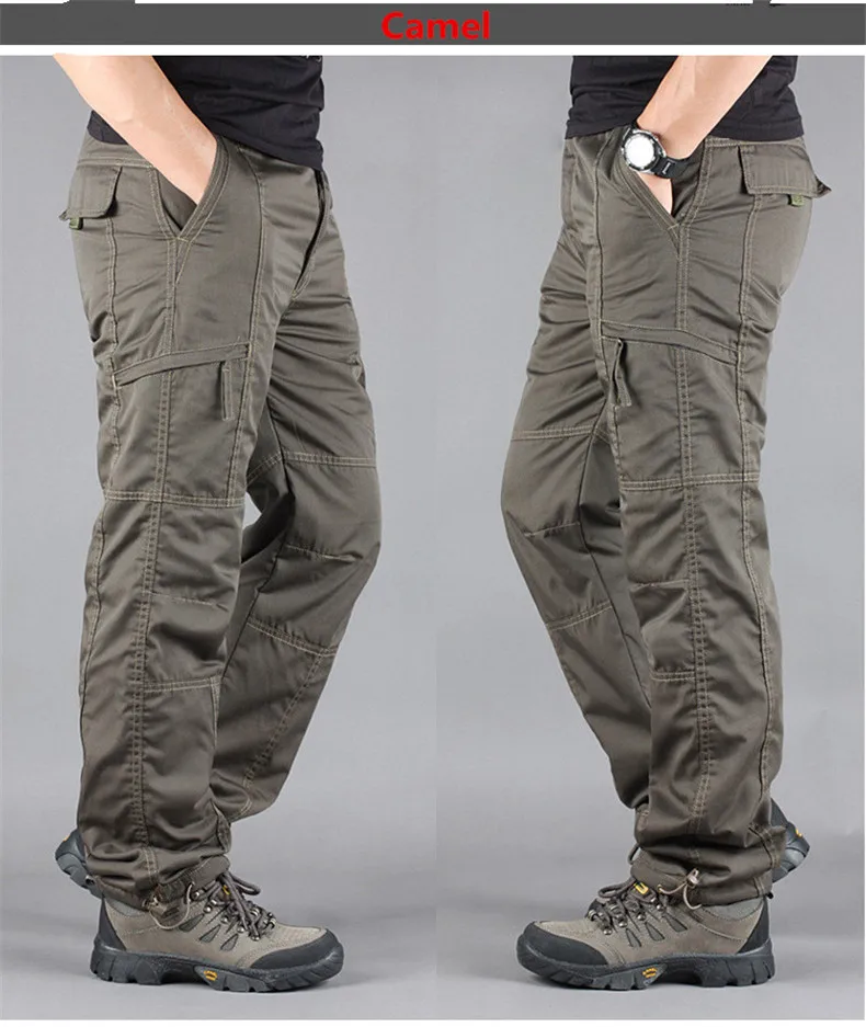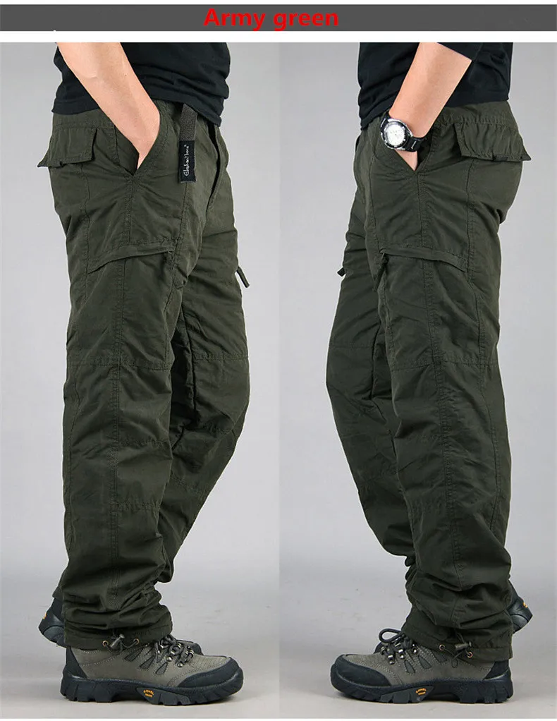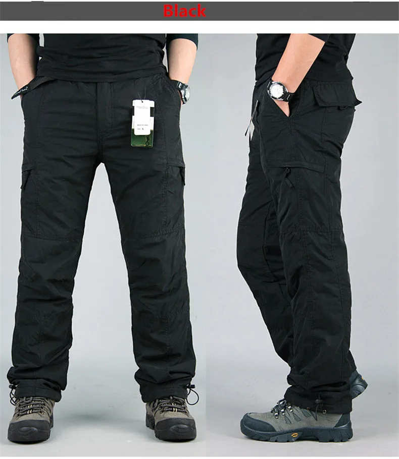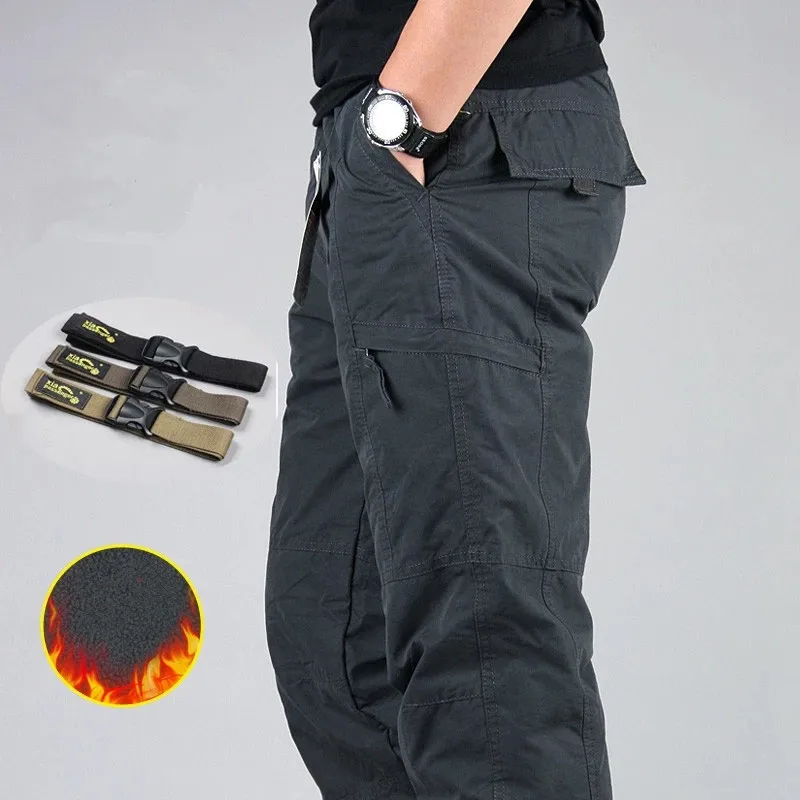 Новые зимние мужские водонепроницаемые брюки-карго, флисовые толстые теплые штаны, двухслойные повседневные военные мешковатые тактические брюки с несколькими карманами