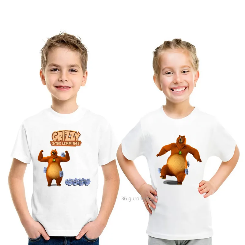 Новая мультяшная футболка для мальчиков с изображением яркого медведя солнечного света, милая Забавная детская одежда с леммингом для девочек, летняя детская футболка, детские футболки, топы