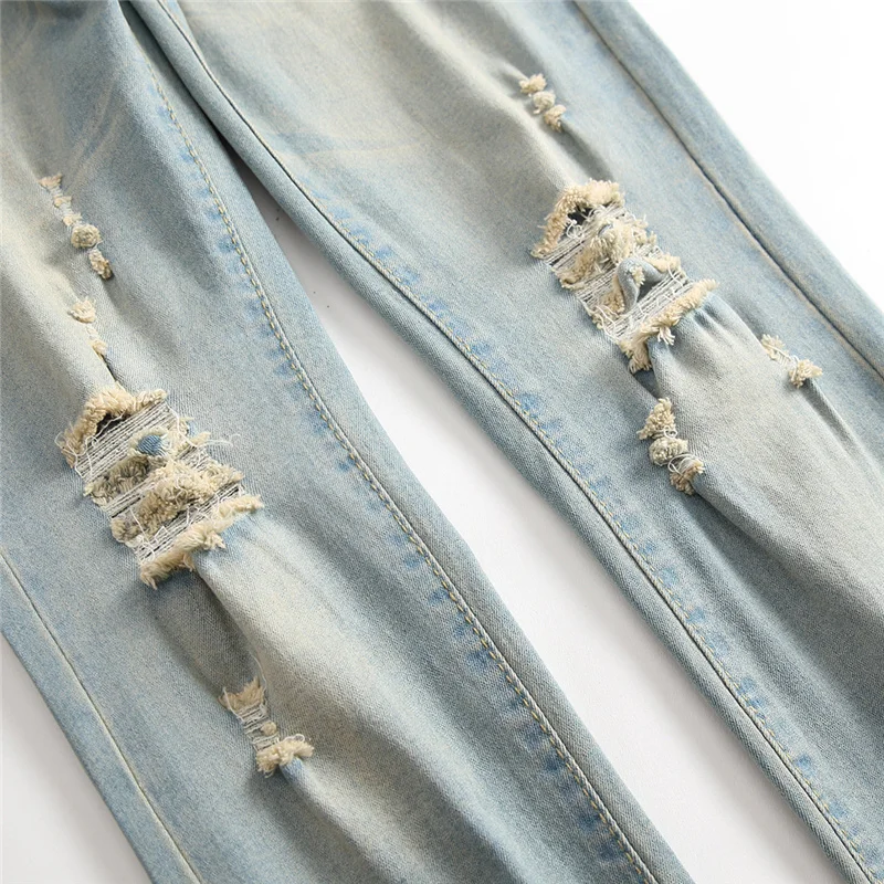 Мужские рваные джинсы-карандаш в стиле хип-хоп