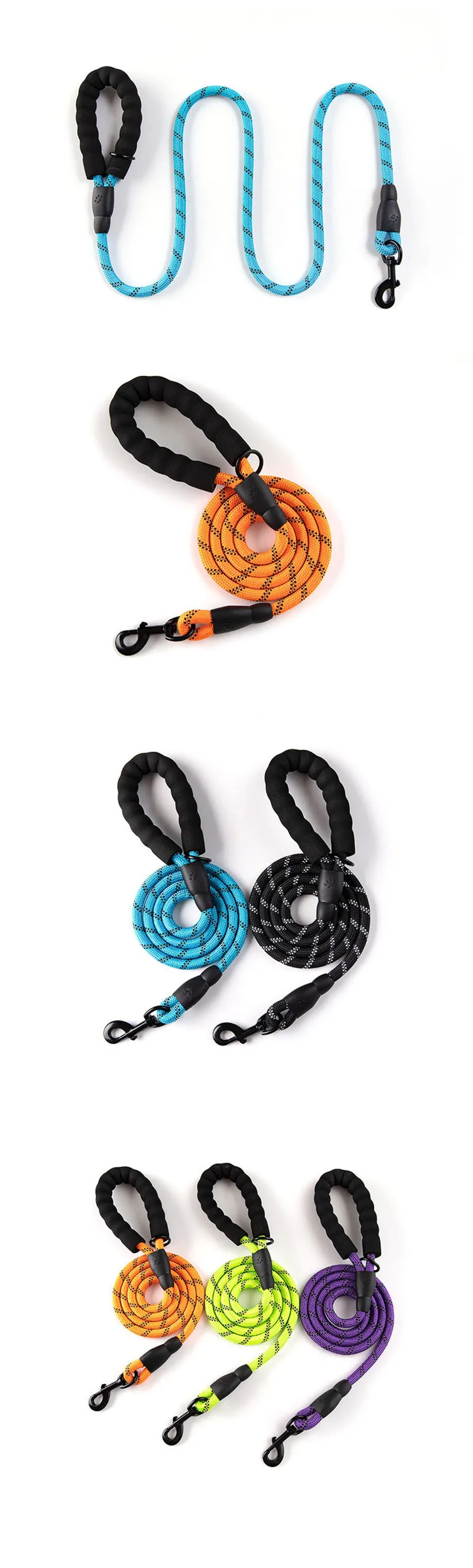 Спецификация: 1. Длина: 1,5 м/5 футов, Ширина: 0,8 см. 2. Нейлоновые плетеные поводки для собак с пряжкой D. 3. Применение: идеально подходит для больших собак. 4. Особенности: светоотражающие 5. Материал: нейлон 6. Цвет: зеленый, черный, розовый, синий, красный