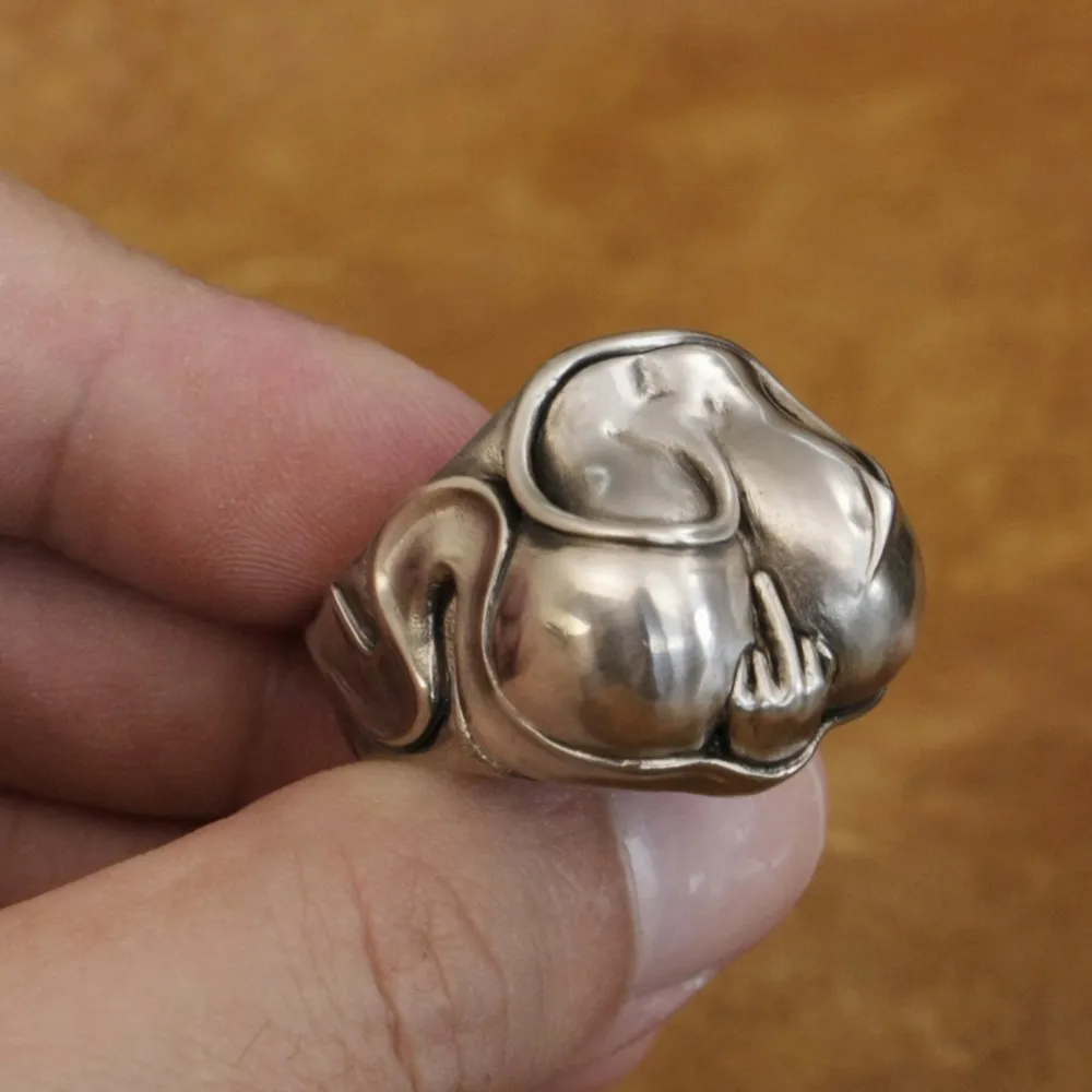 Это уникальное украшение станет прекрасным подарком для любого случая!Состояние:Новый и ручной работы в идеальной готовойМатериал:МельхиорВысота лица:Прибл.32 ммВес:Прибл.19,5 граммРазмер США:#7 ~ #15Примечание: