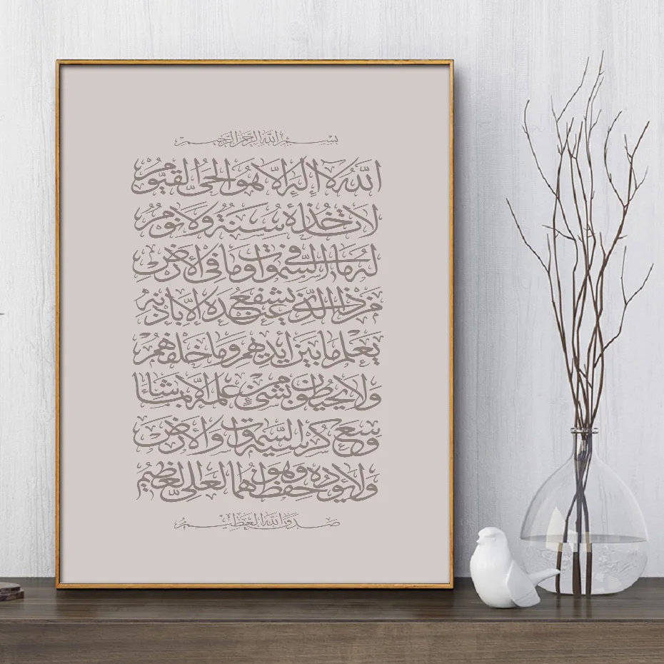 Мусульманские настенные художественные плакаты в стиле бохо Ayatul Kursi, цитаты со священным Кораном, Картина на холсте, печать, интерьер спальни, домашний декор