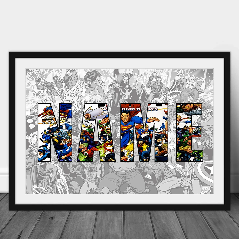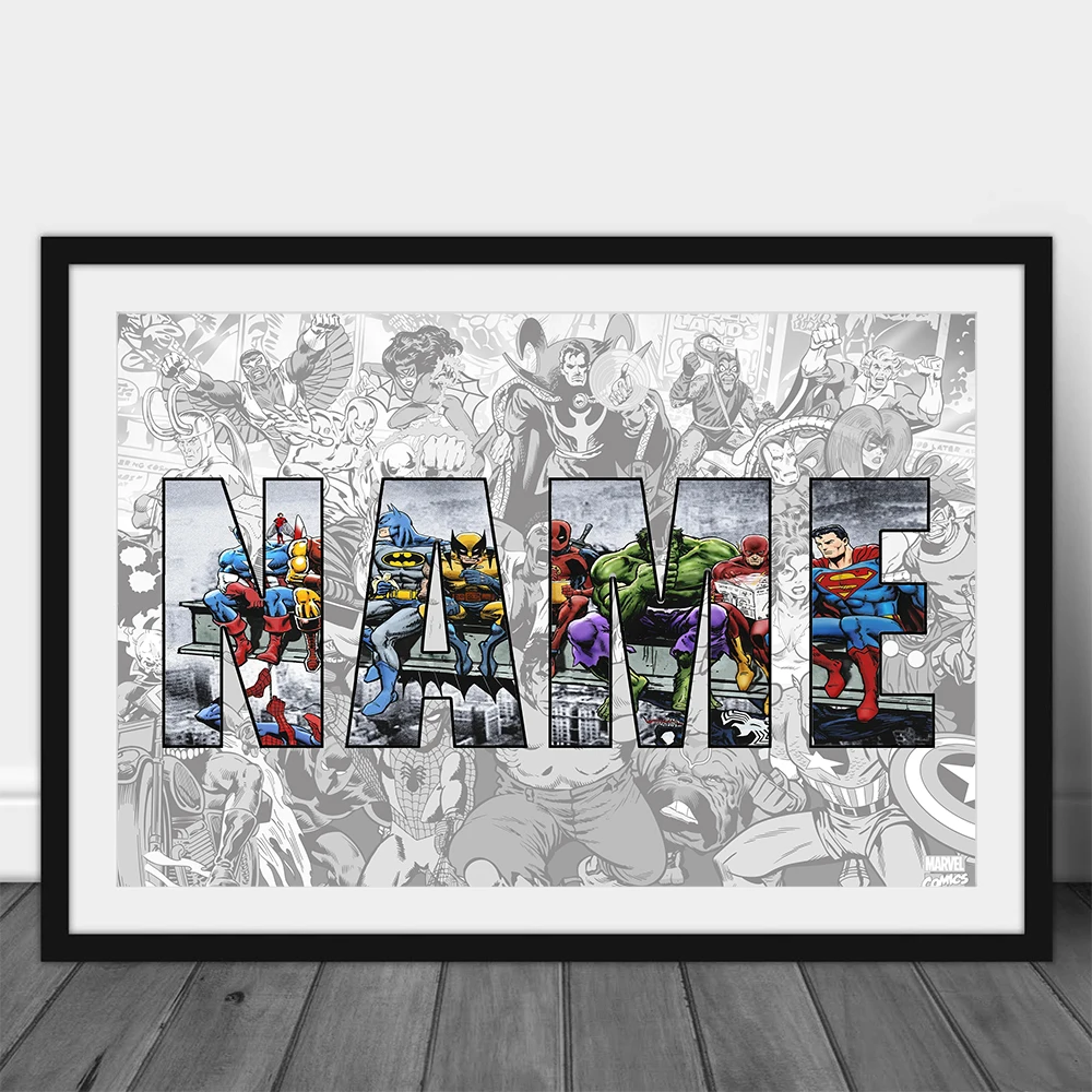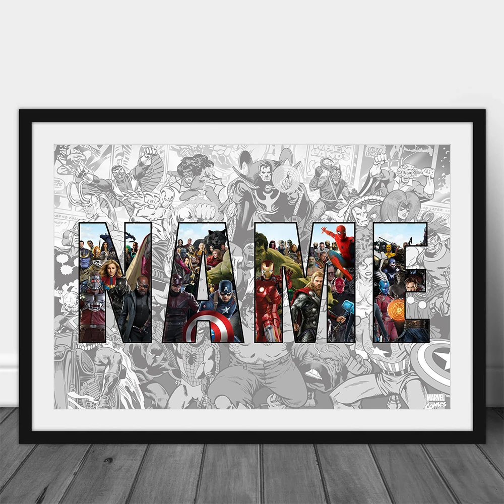 Настраивайте свое имя, Marvel плакат супергероя, Картина на холсте выше гостиной, спальни, картина для украшения детской комнаты