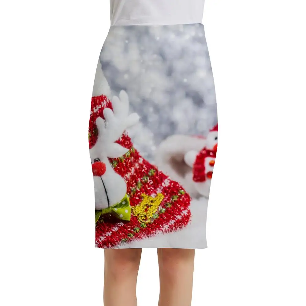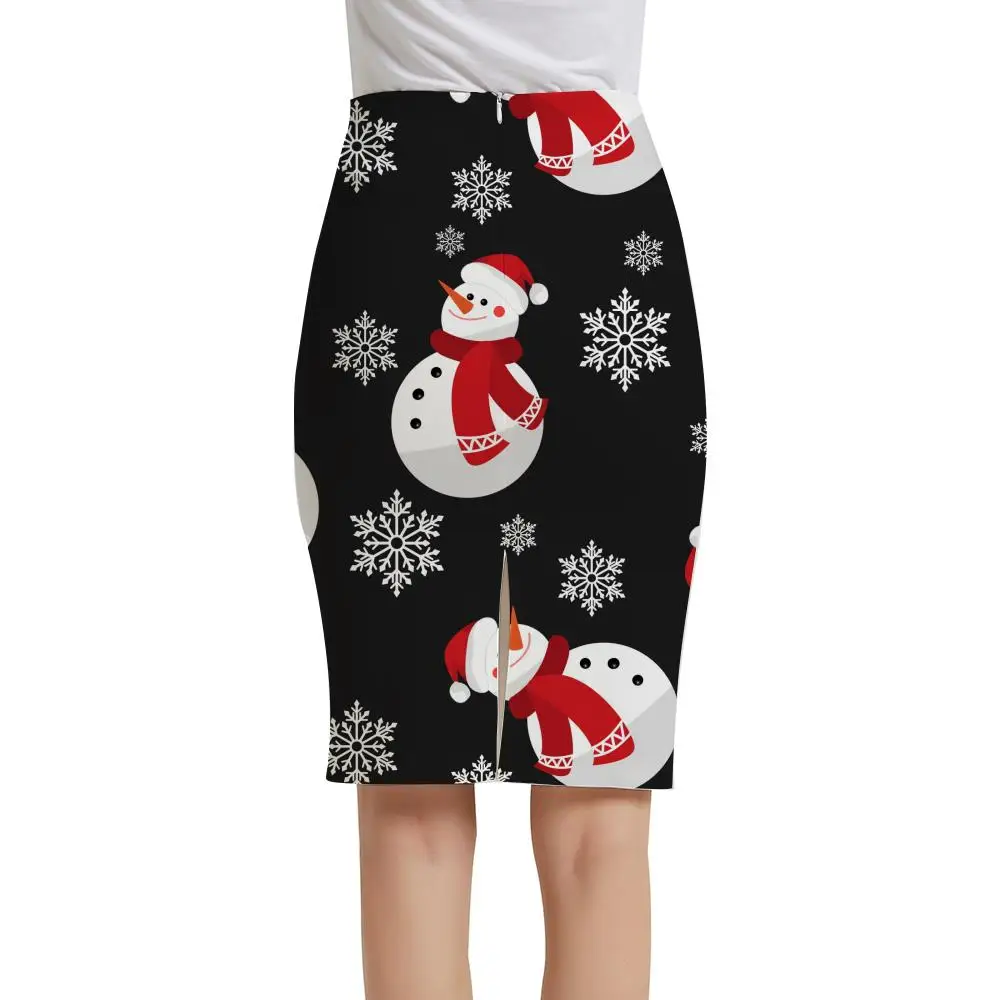 Женская рождественская юбка KYKU, летняя юбка-карандаш с объемным рисунком снеговика и снежинок