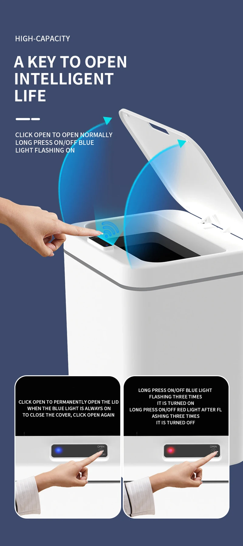 Умная мусорная корзина 14L с автоматическим датчиком, мусорная корзина с умным датчиком, электрическая мусорная корзина, домашняя мусорная корзина для кухни, ванной, мусорная корзина