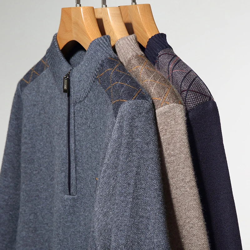 Свитер мужской шерстяной на молнии, зимний, теплый, полосатый