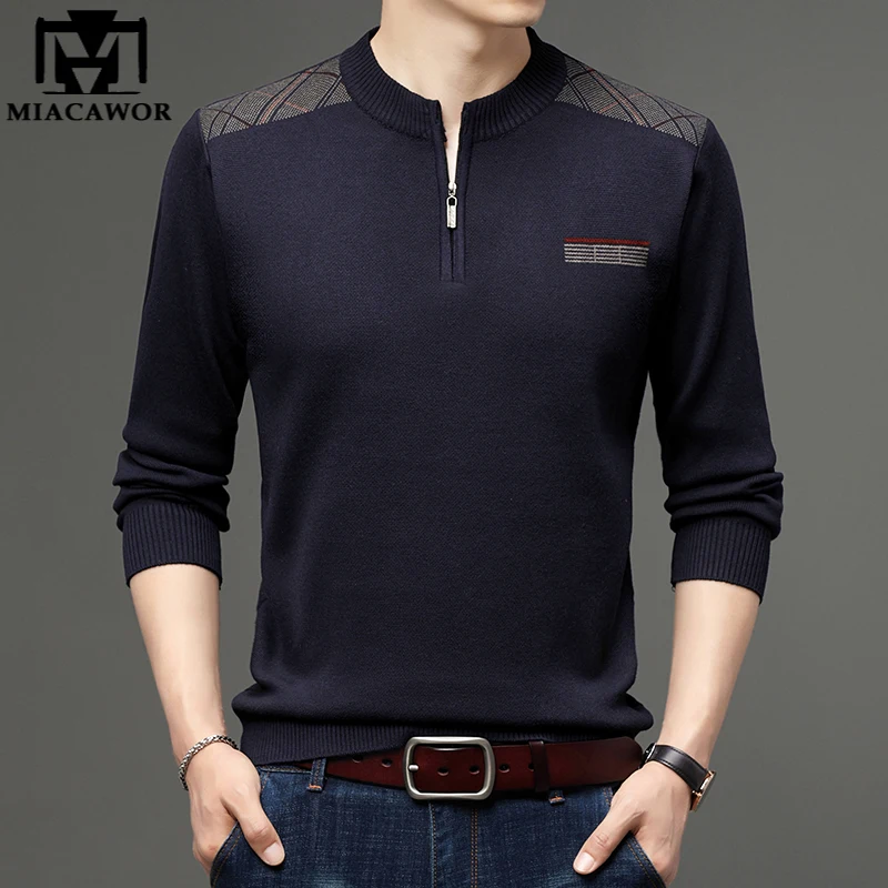 MIACAWOR зимний свитер мужской Повседневный пуловер на молнии мужск...