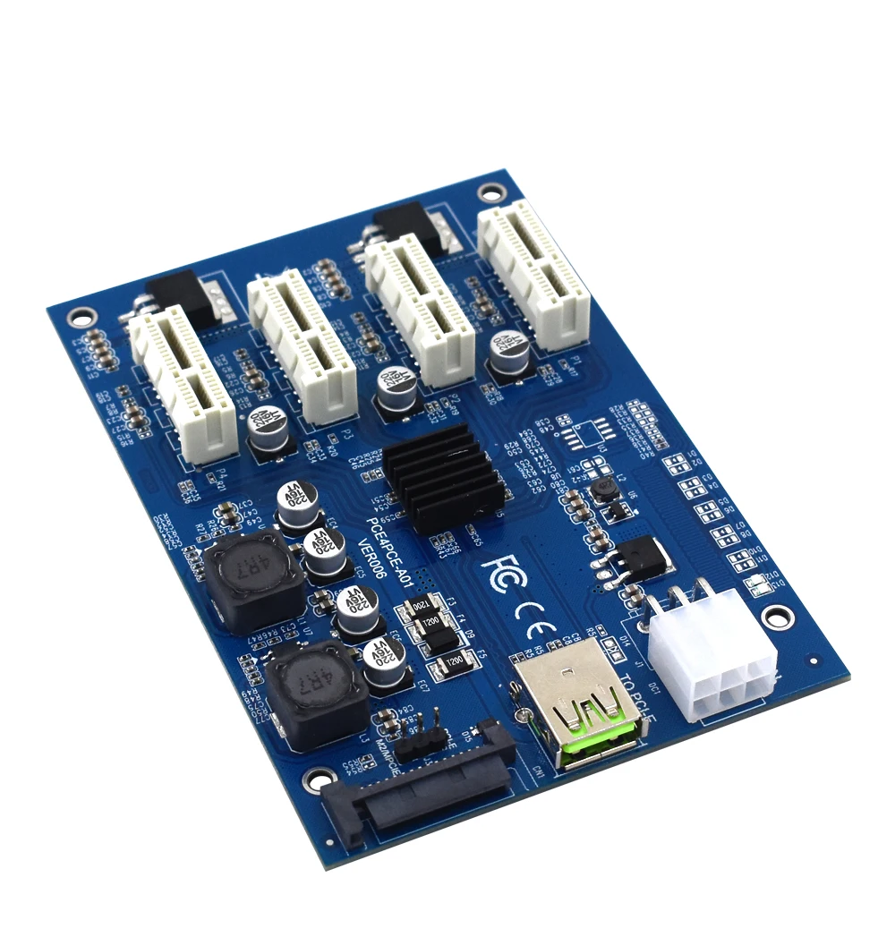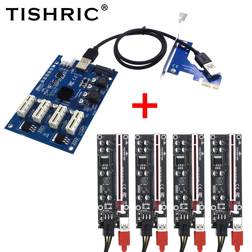 Видеокарта TISHRIC PCIE 1X на 4 порта 1X множитель PCI Express, Райзер 009S Plus SATA, Райзер-карта PCI 15 pin + 6pin, порт питания