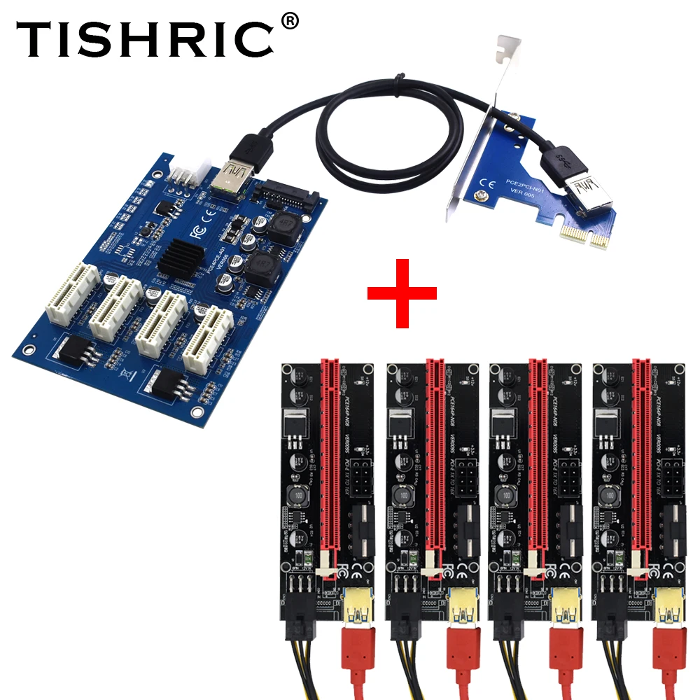 Усилитель TISHRIC PCI Express, Райзер с 1 на 4 1X PCI-E PCIE USB 3,...