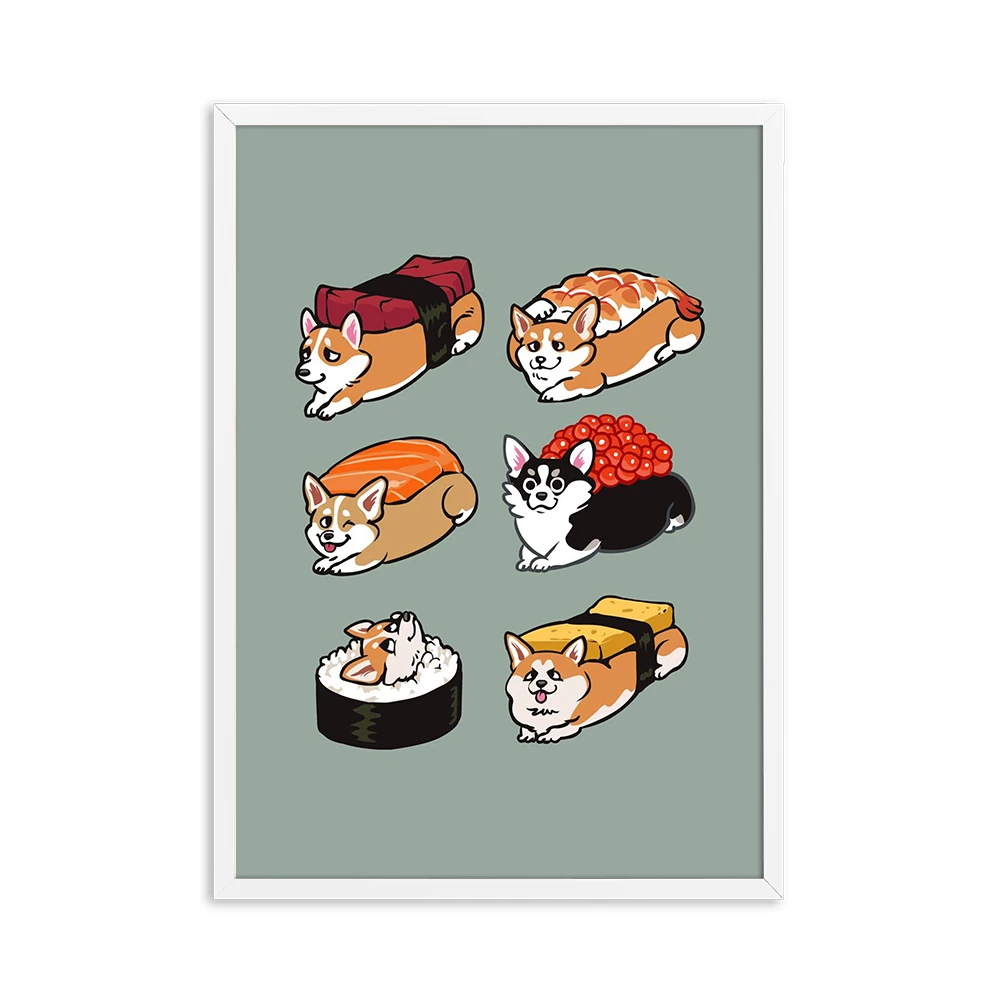 Картина на холсте кошка-рамен, японские суши, мопсы, кошка, настенные плакаты и принты в скандинавском стиле, настенные картины для украшения гостиной