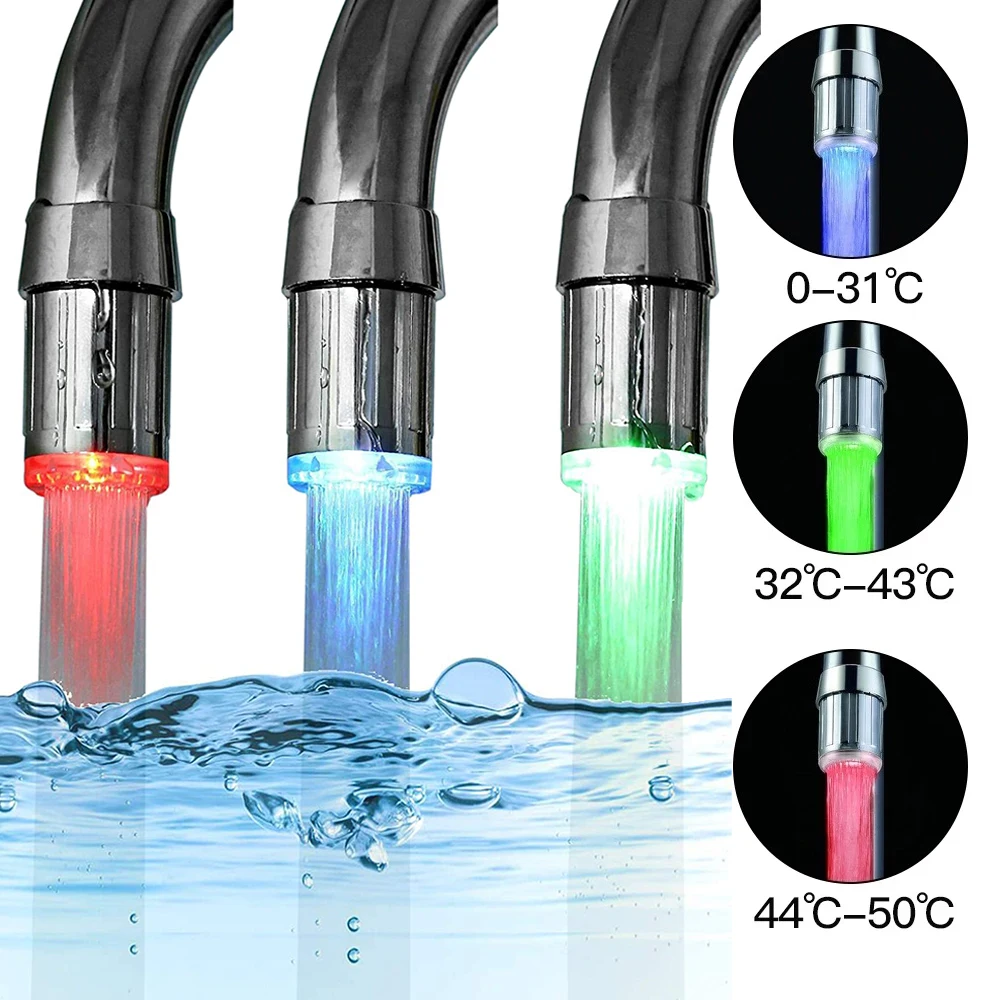 3-Цвет Температура чувствительный градиент Светодиодный водопроводный кран поток воды Цвет изменение водопроводной воды насадка для Кухня Аксессуары для ванной комнаты 7