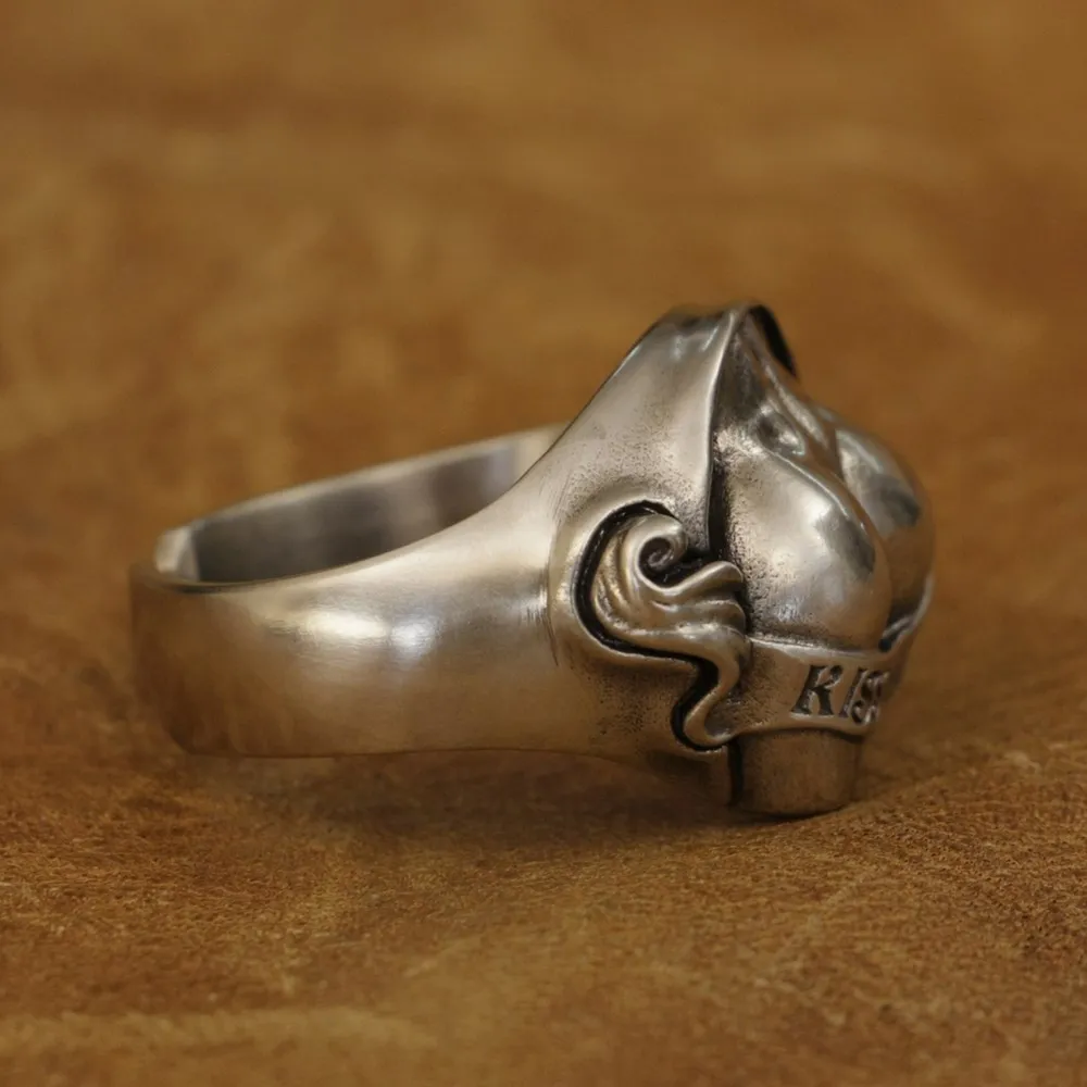 Это уникальное украшение станет прекрасным подарком для любого случая!Состояние:Новый и ручной работы в идеальной готовойМатериал:МельхиорВысота лица:Прибл.20 ммВес:Прибл.16 граммРазмер США:#7 ~ #15Примечание:
