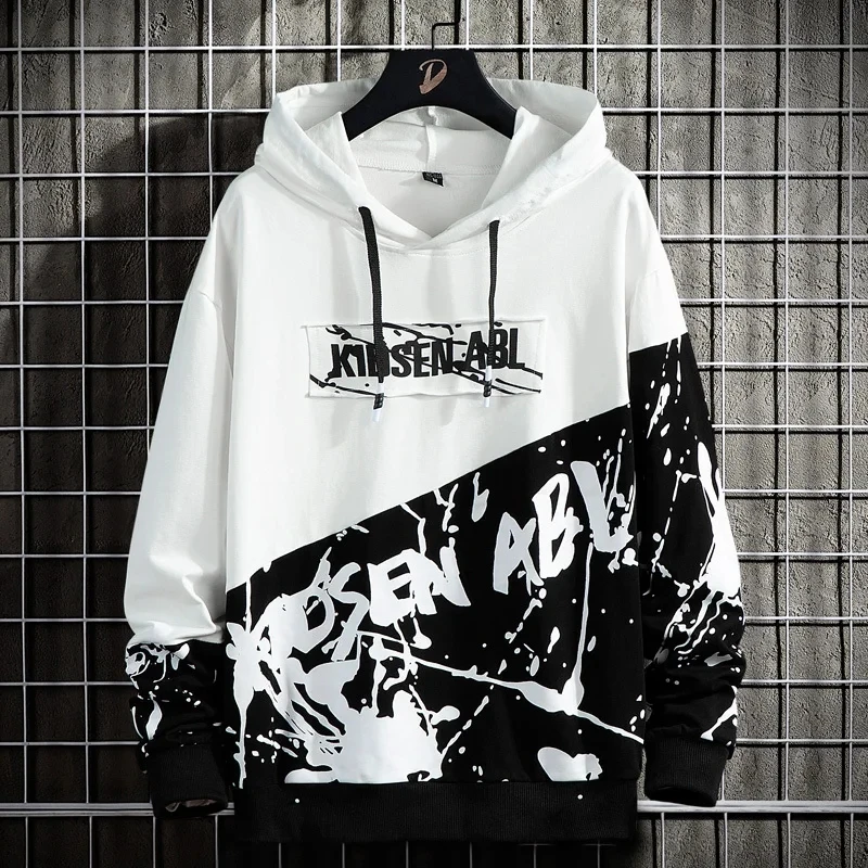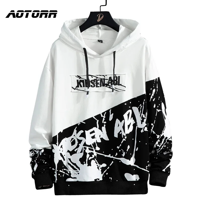 Толстовка мужская в стиле хип-хоп, Модный свитшот в стиле пэчворк, худи с надписью, свитшот с длинным рукавом, уличная одежда свободного покроя в стиле Харадзюку, на осень