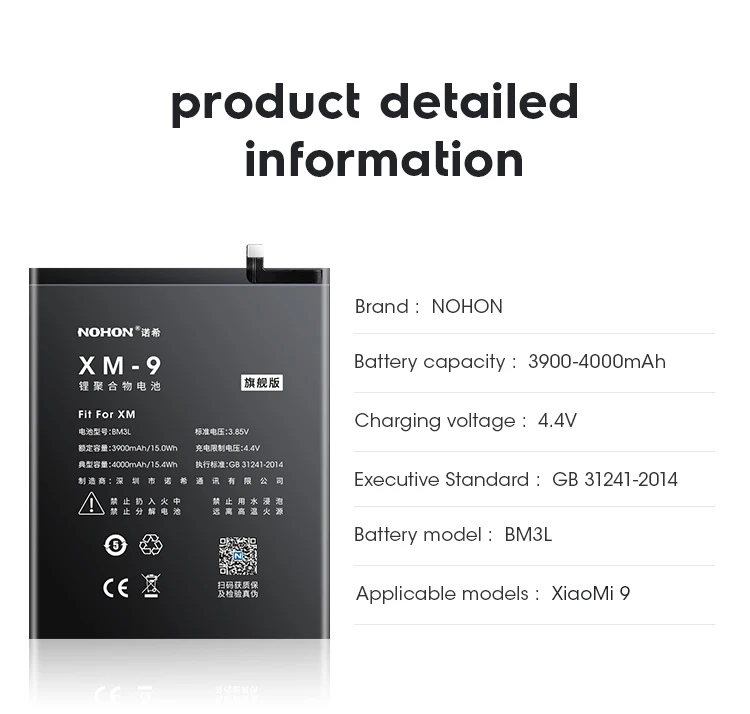 Аккумулятор Nohon BM3L для Xiaomi Mi 9 8 6 Max2 BM50 BM3M BM3E BM3K...