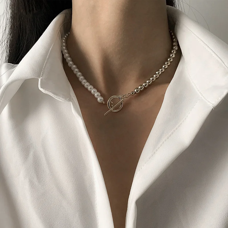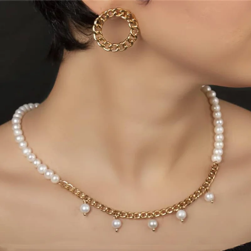 Ожерелье-цепочка женское из кубинской цепи с искусственным жемчугом